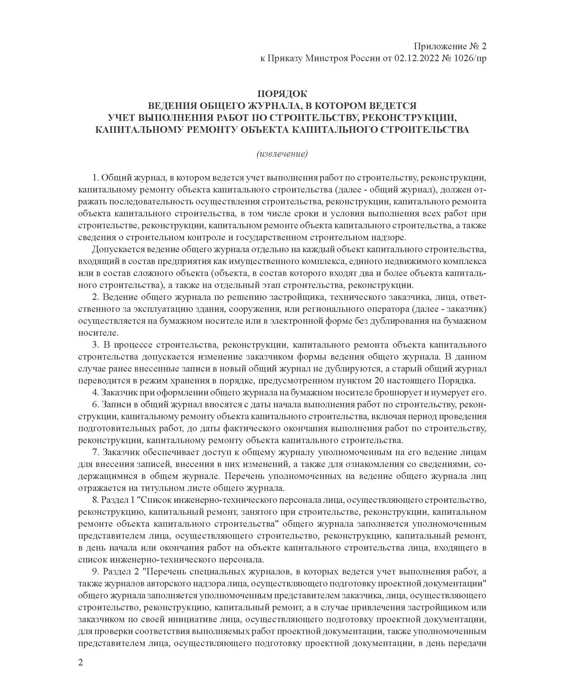 Общий журнал, в котором ведется учет выполнения работ по строительству, реконструкции, капитальному ремонту объекта капитального строительства. Приложение № 1 к Приказу Минстроя России от 02.12.2022 № 1026/пр, книжный, нумерованный, прошитый, 100 страниц