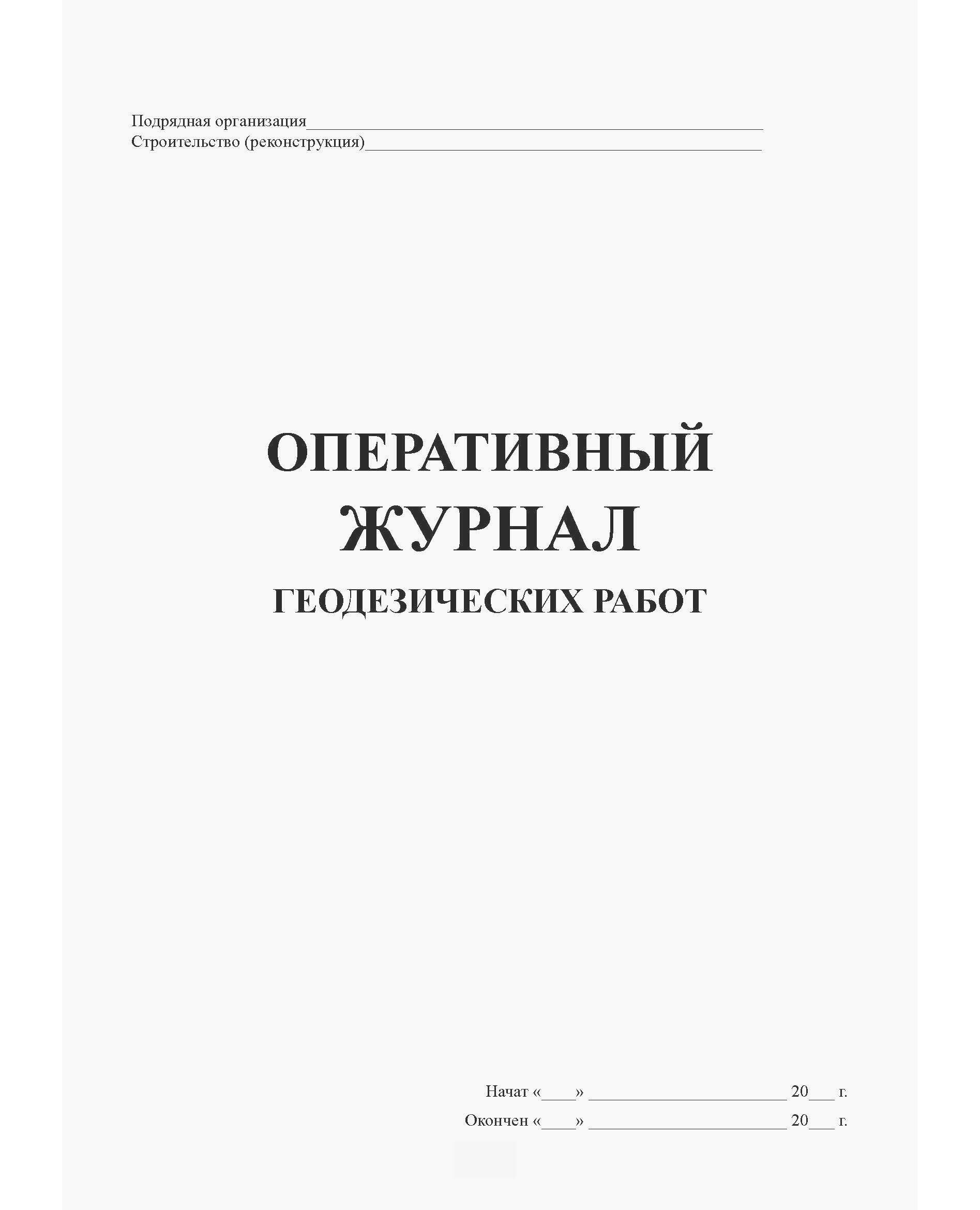 Главная/Журналы (Твердая, мягкая обложка, прошитые)/Строительство/Оперативный журнал геодезических работ (Форма № Ф-5, утверждена Распоряжением Росавтодора от 23.05.2002 № ИС-478-р, введена в действие с 1 мая 2002 года.), (прошитый, 100 страниц, нумерованный)
