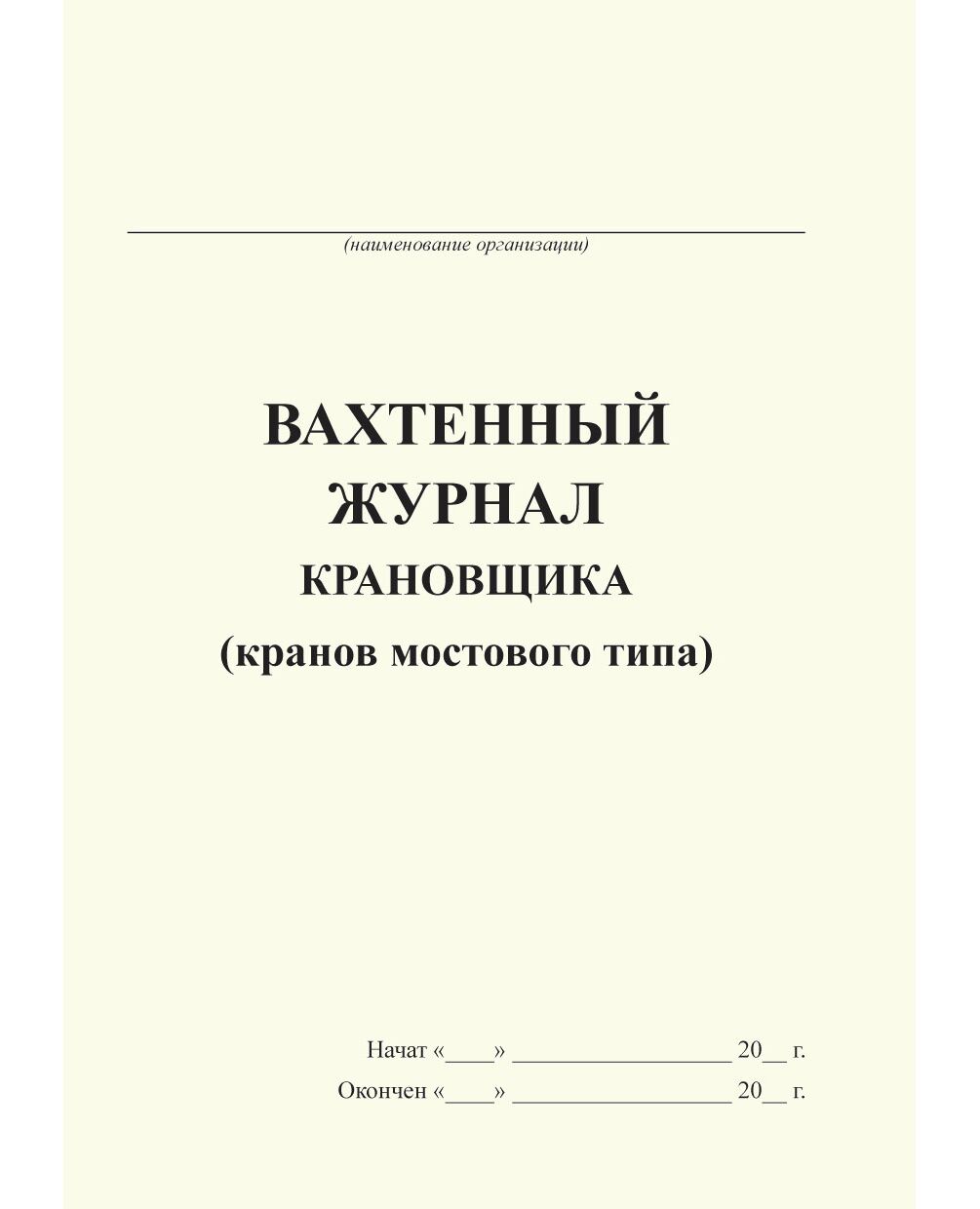 Вахтенный журнал крановщика (кранов мостового типа) (с извлечением из Приказа Ростехнадзора от 26.11.2020 № 461) (формат А5, 120 стр., прошитый)