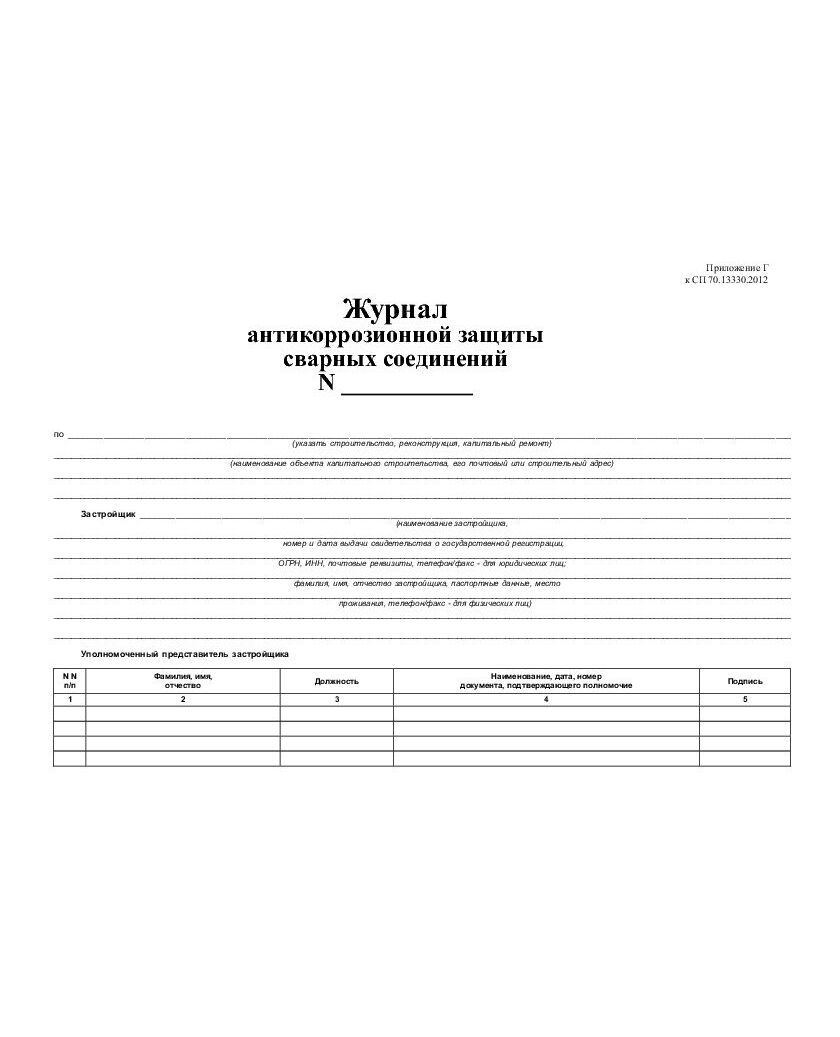 Журнал антикоррозионной защиты сварных соединений с вставкой начального раздела из Общего Журнала работ (Приложение В к СП 70.13330.2012) (нумерованный, прошитый, 100 страниц)