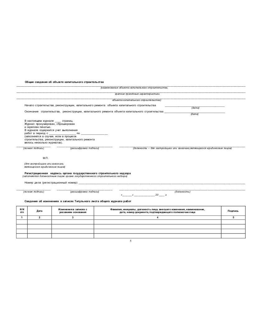 с вставкой начального раздела из Общего Журнала работ (нумерованный, прошитый, 100 страниц)