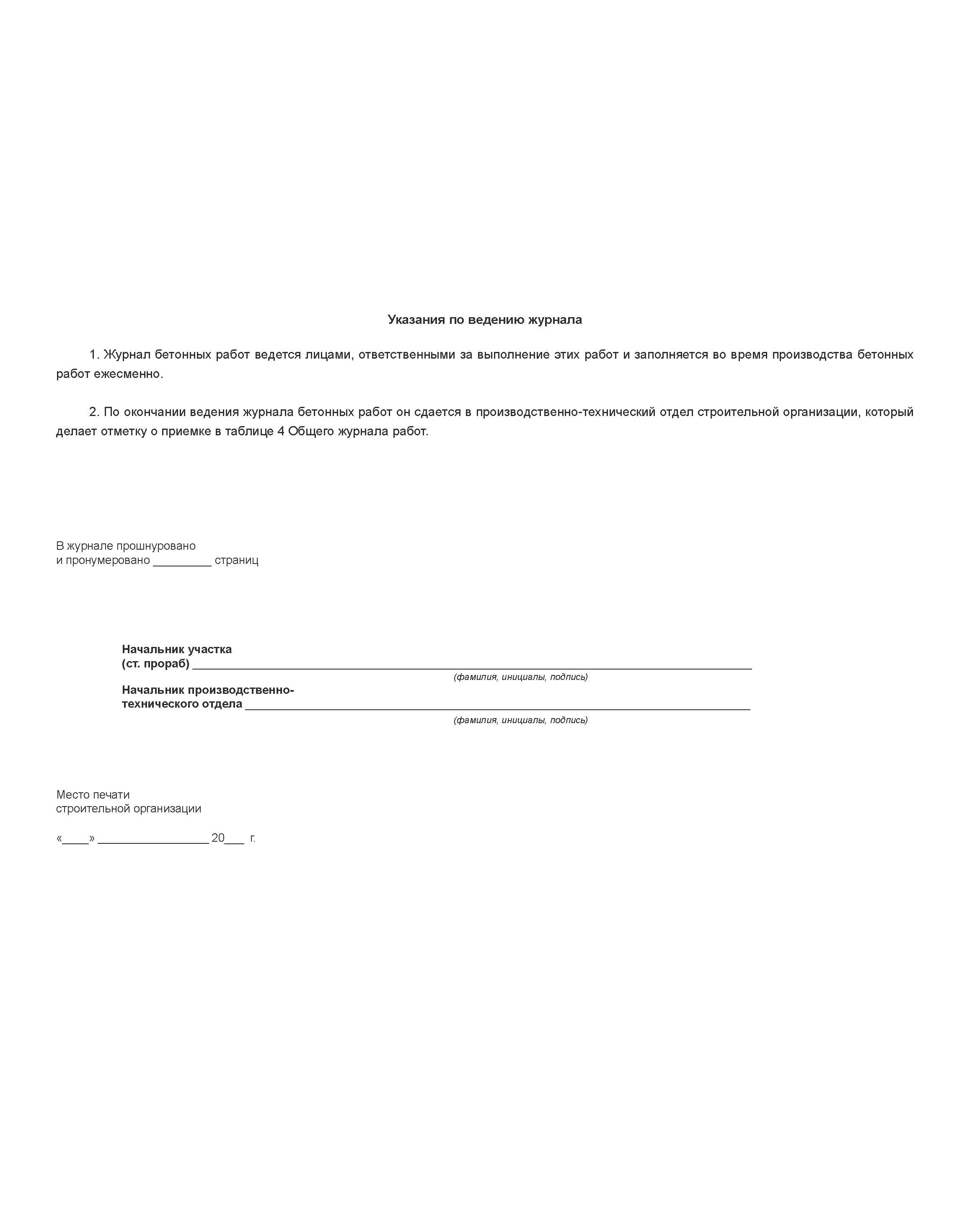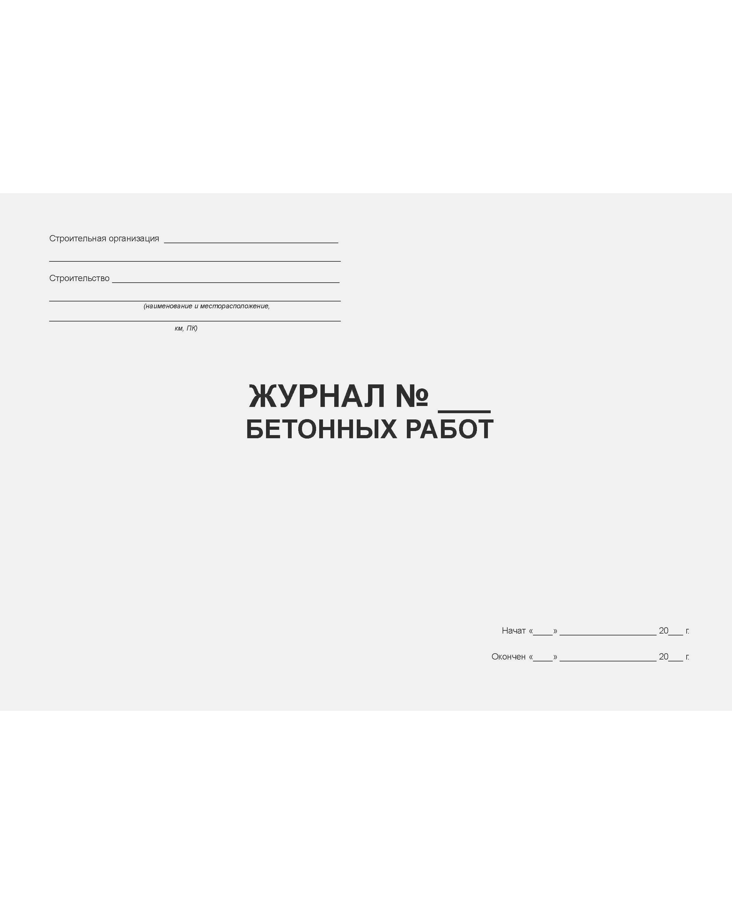 Журнал бетонных работ. Форма № Ф-54, утвержденная Распоряжением Росавтодора от 23.05.2002 № ИС-478-р (прошитый, 100 страниц)