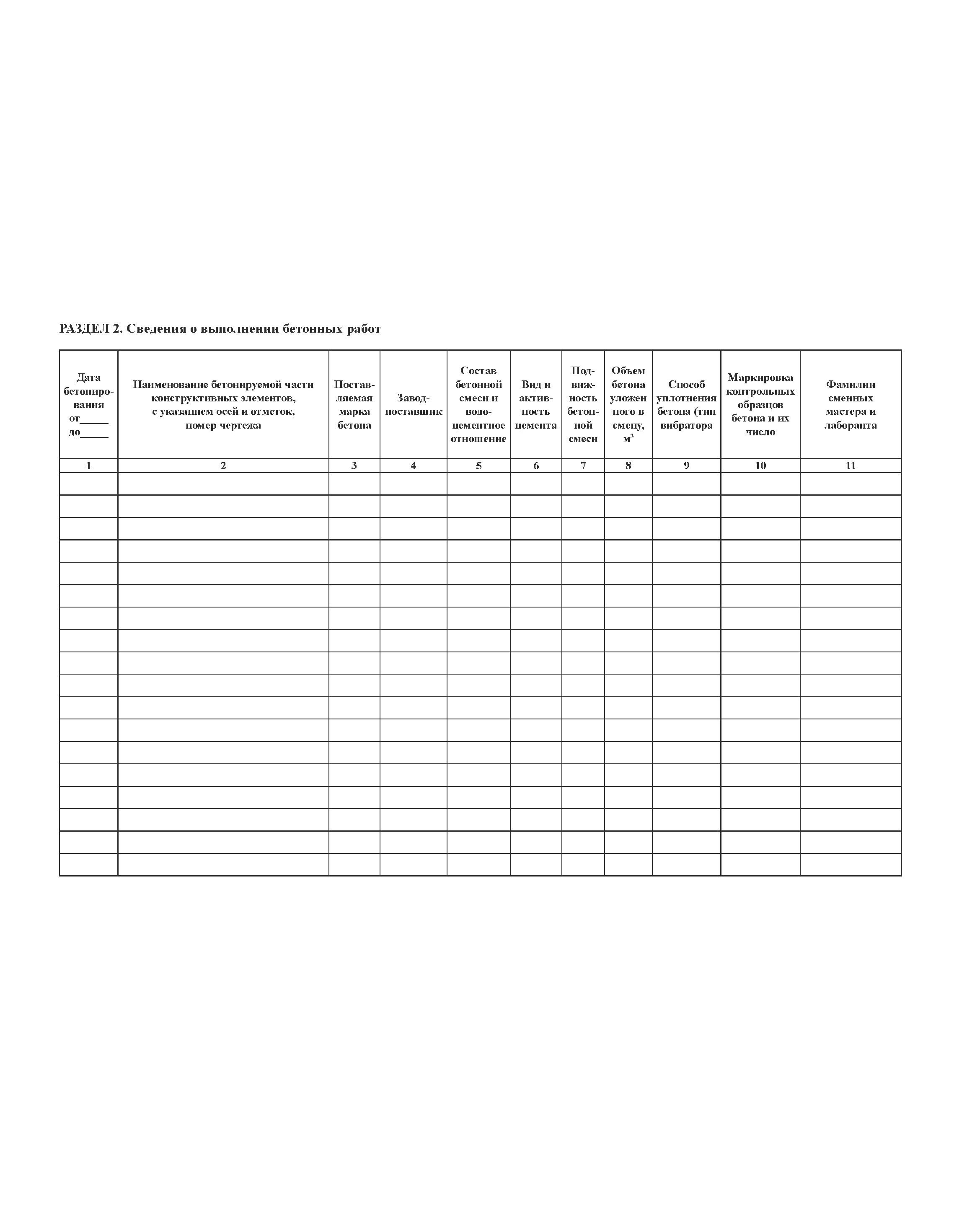 Выполнен в соответствии с формой рекомендованной Управлением госстройнадзора Свердловской области. Разъясняющая форма журнала бетонных работ в соответствии со СНиП 3.03.01-87, ГОСТ 10181.0 и РД 11-05-2007 к Порядку ведения общего и (или) специального журнала учета выполнения работ при строительстве, реконструкции, капитальном ремонте объектов капитального строительства, утвержденному приказом Федеральной службы по экологическому, технологическому и атомному надзору от 12 января 2007 г. № 7