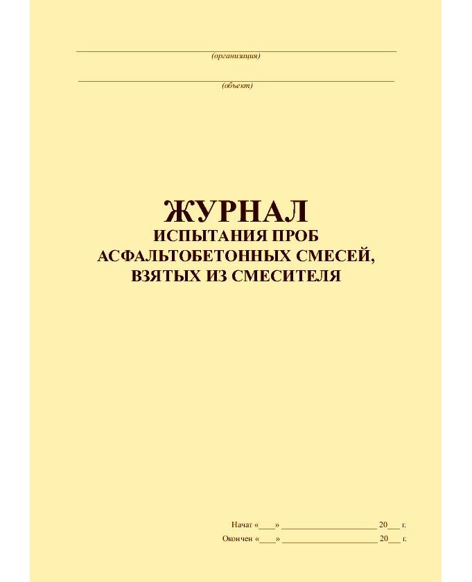 Журнал испытания проб асфальтобетонных смесей, взятых из смесителя (прошитый, 100 страниц)