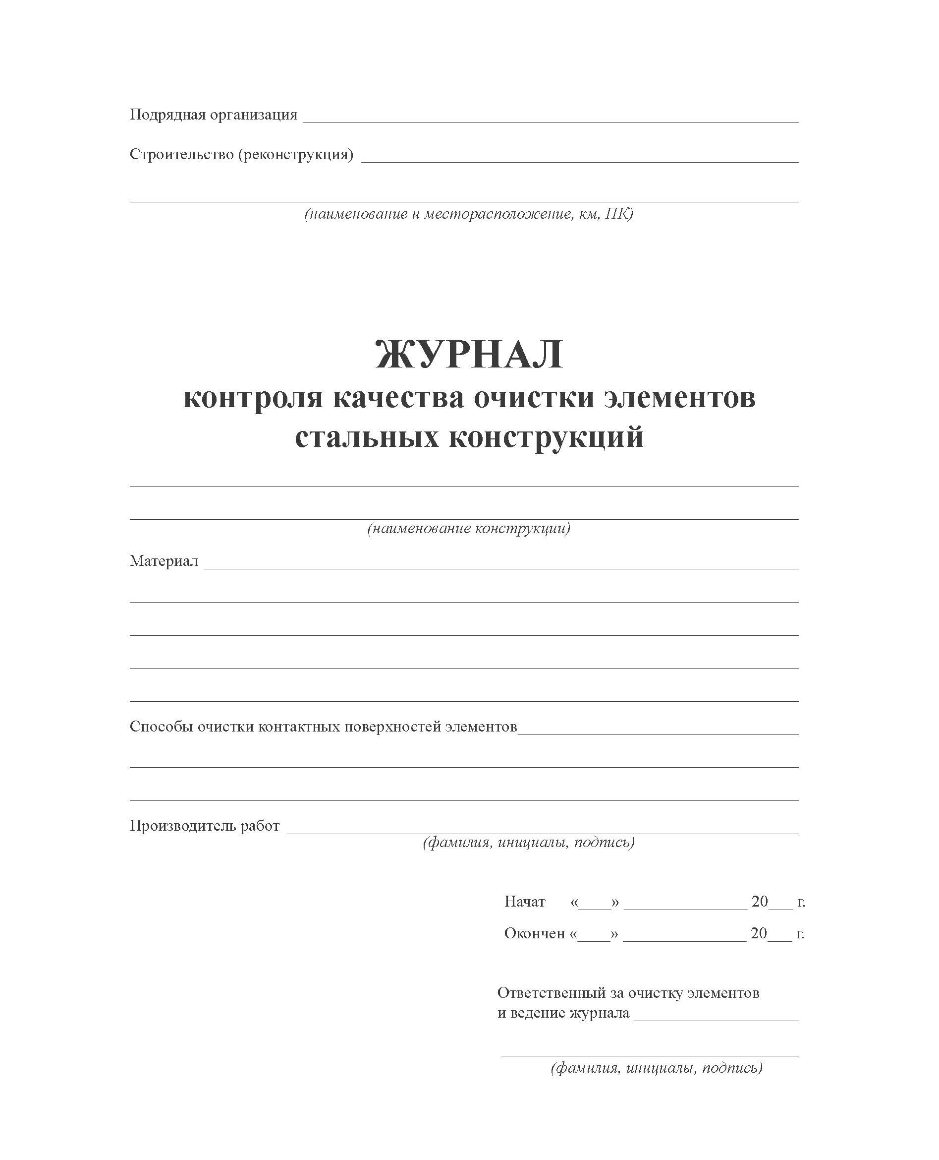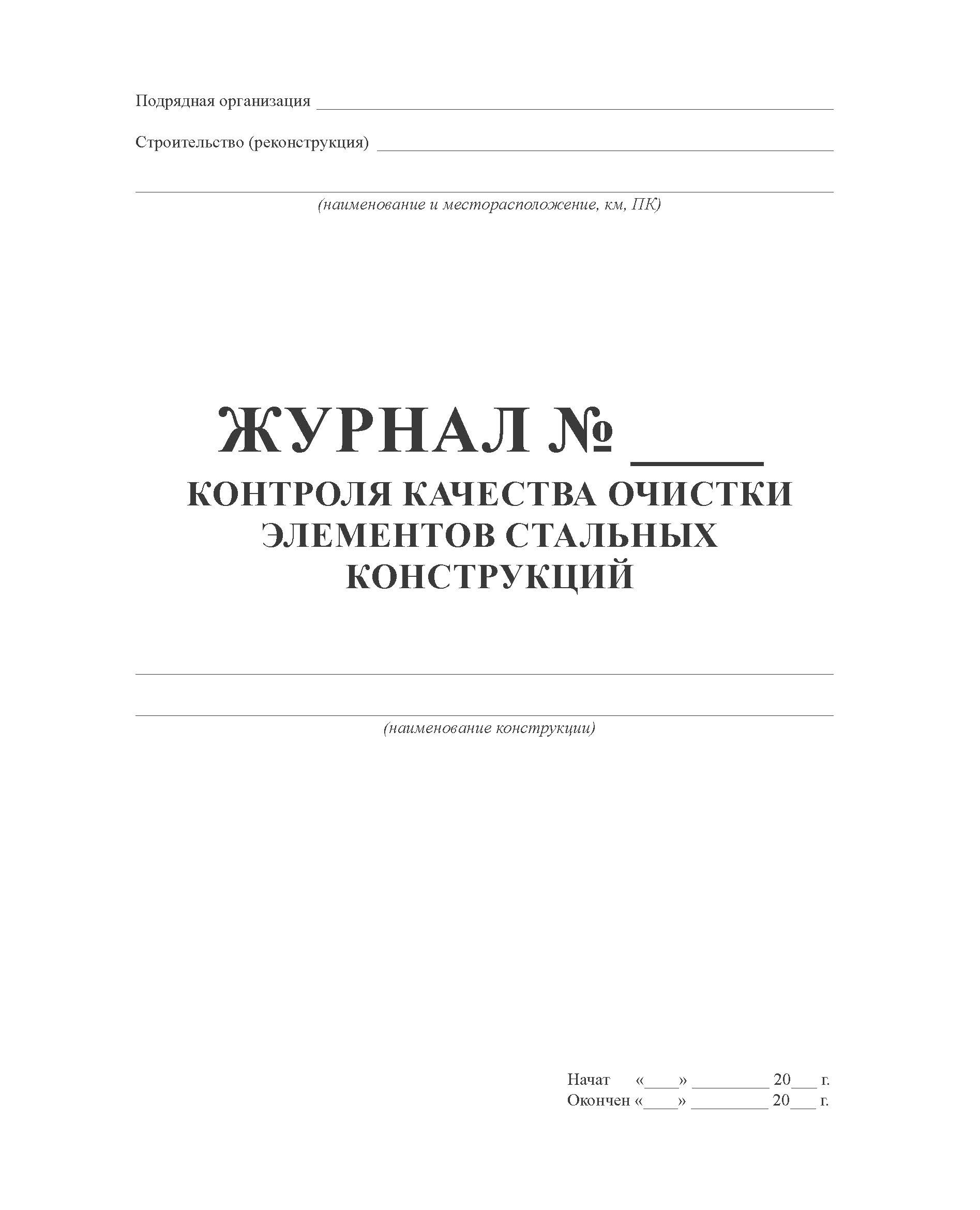 Журнал контроля качества очистки элементов стальных конструкций (100 стр., прошитый)