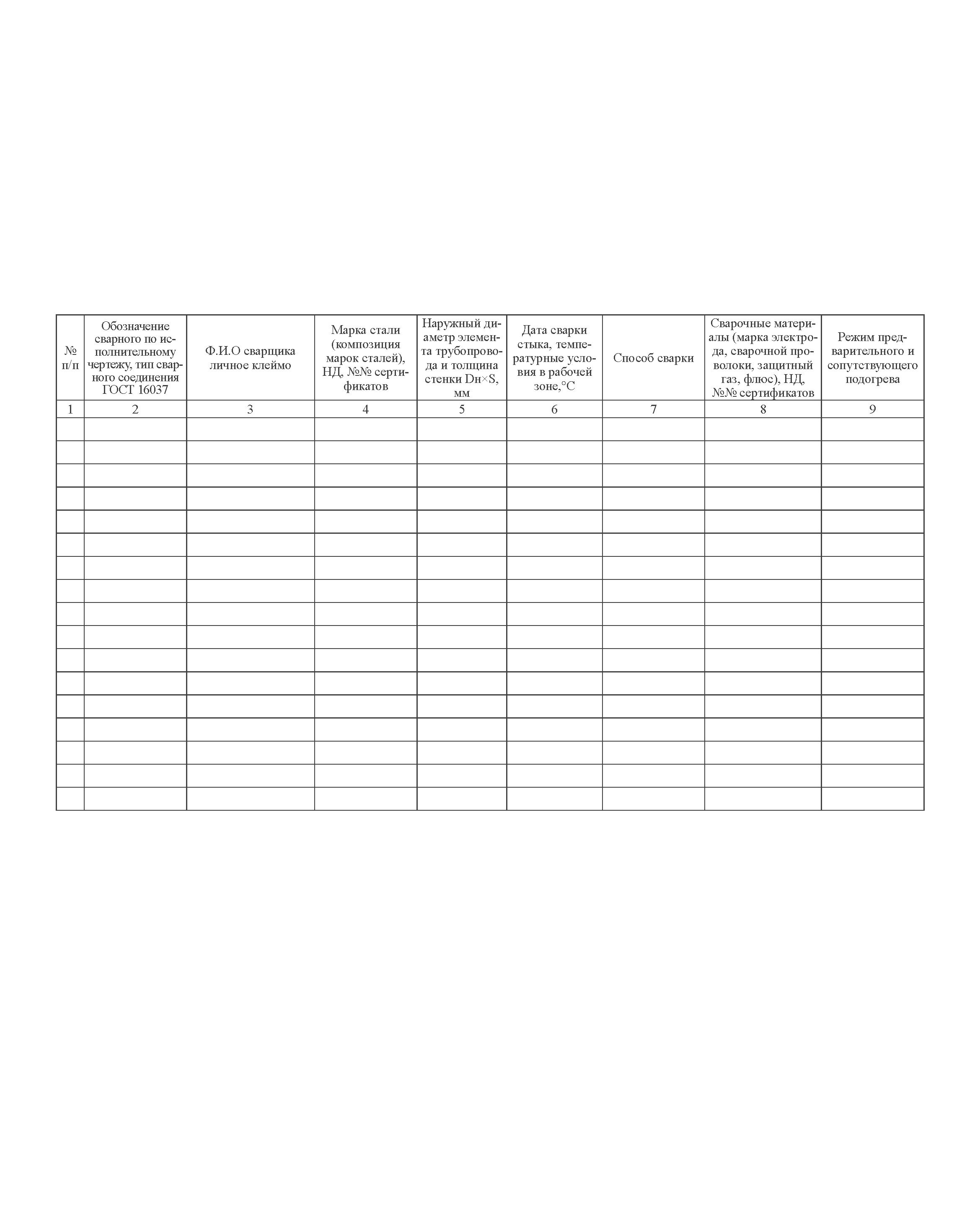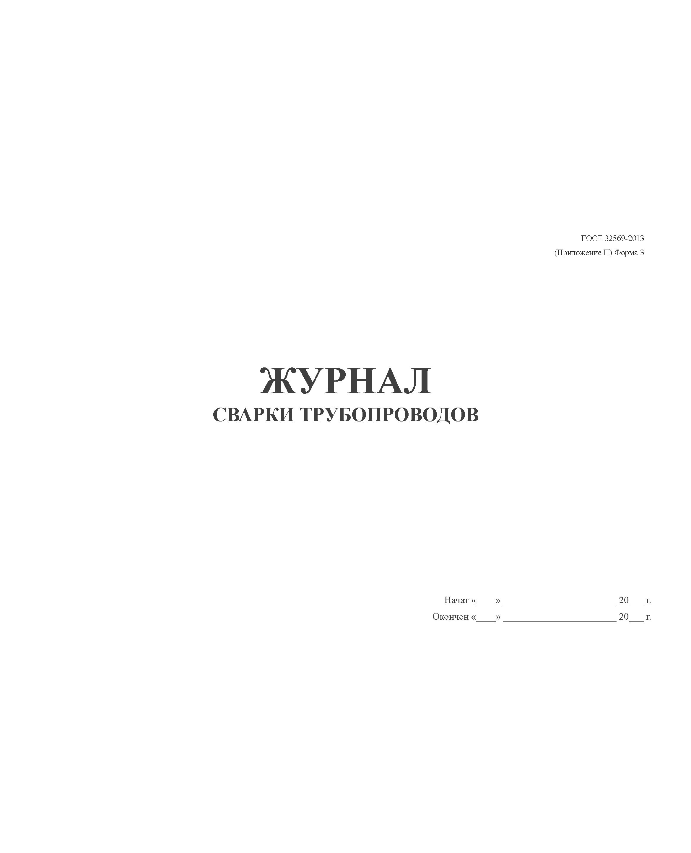 Журнал по сварке трубопроводов. ГОСТ 32569-2013 (Приложение П) Форма 3 (100 страниц, прошитый)