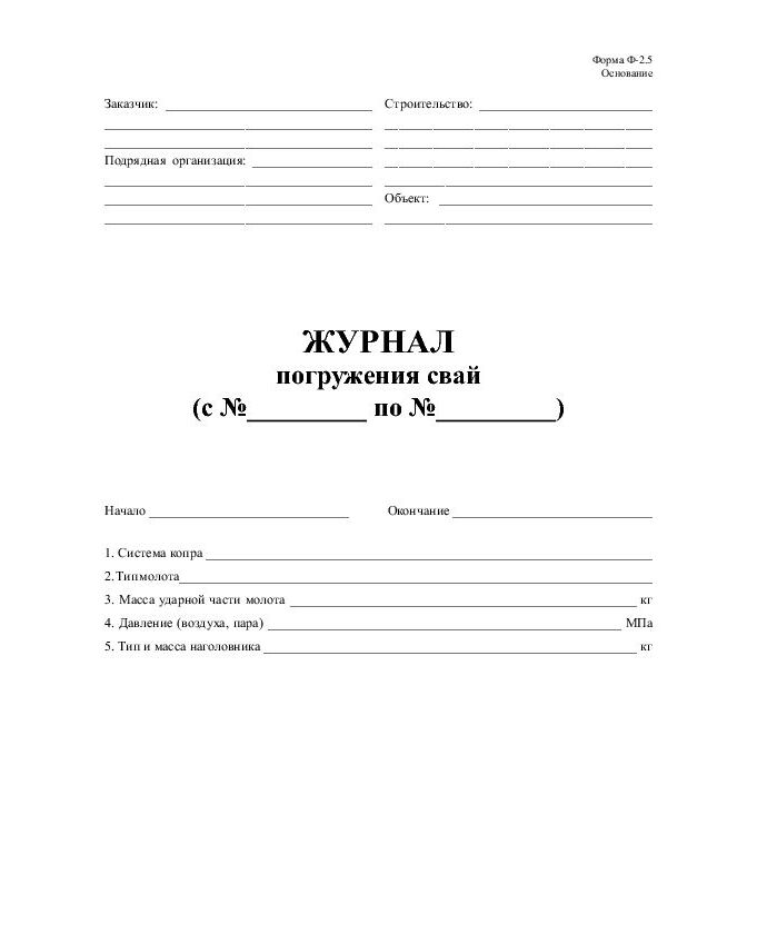 Журнал погружения свай. Форма Ф-2.5 (прошитый, книжный, 100 страниц)