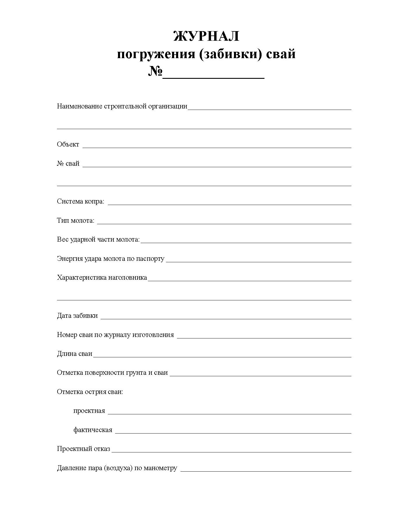 Журнал погружения (забивки) свай. (100 стр., прошитый)