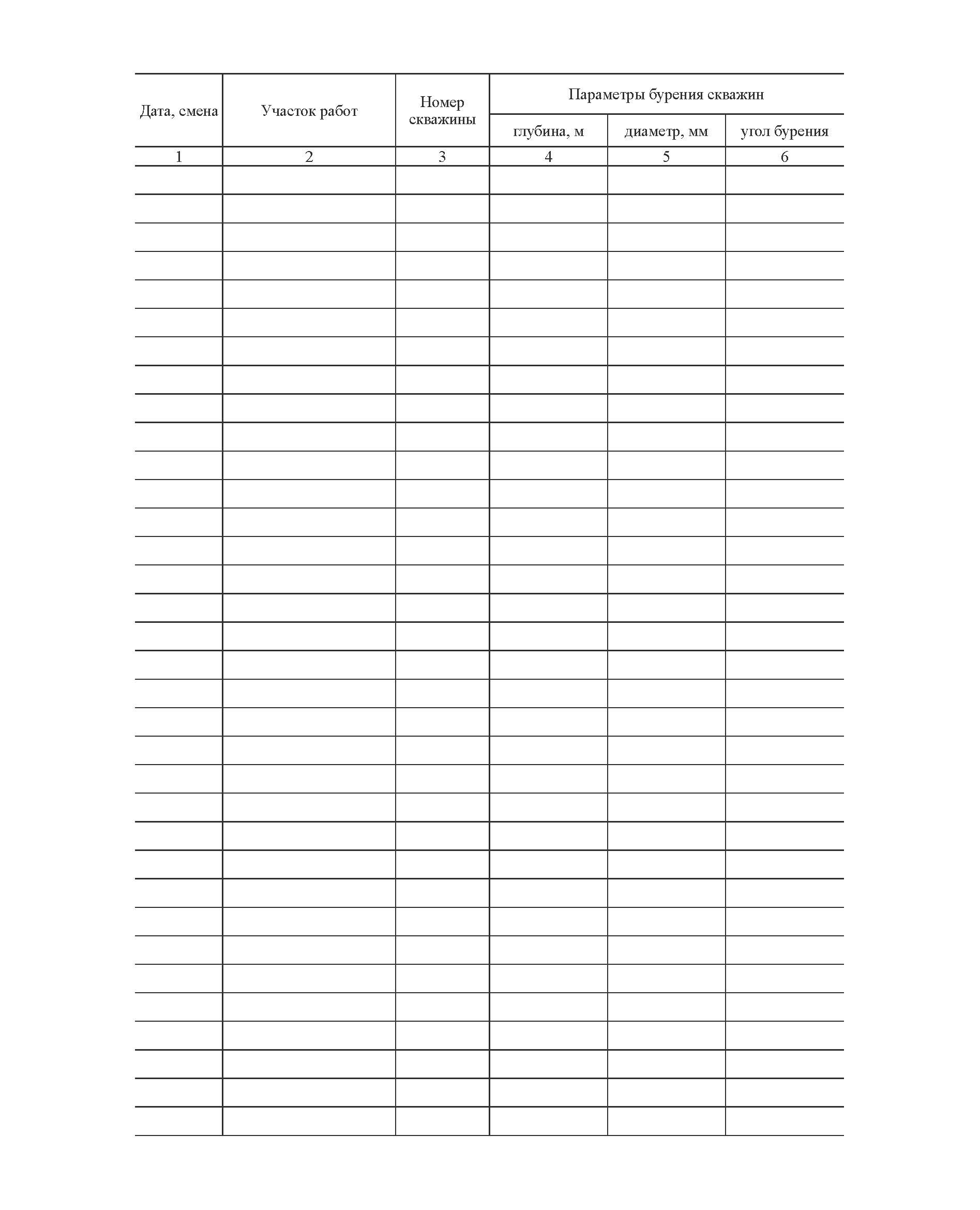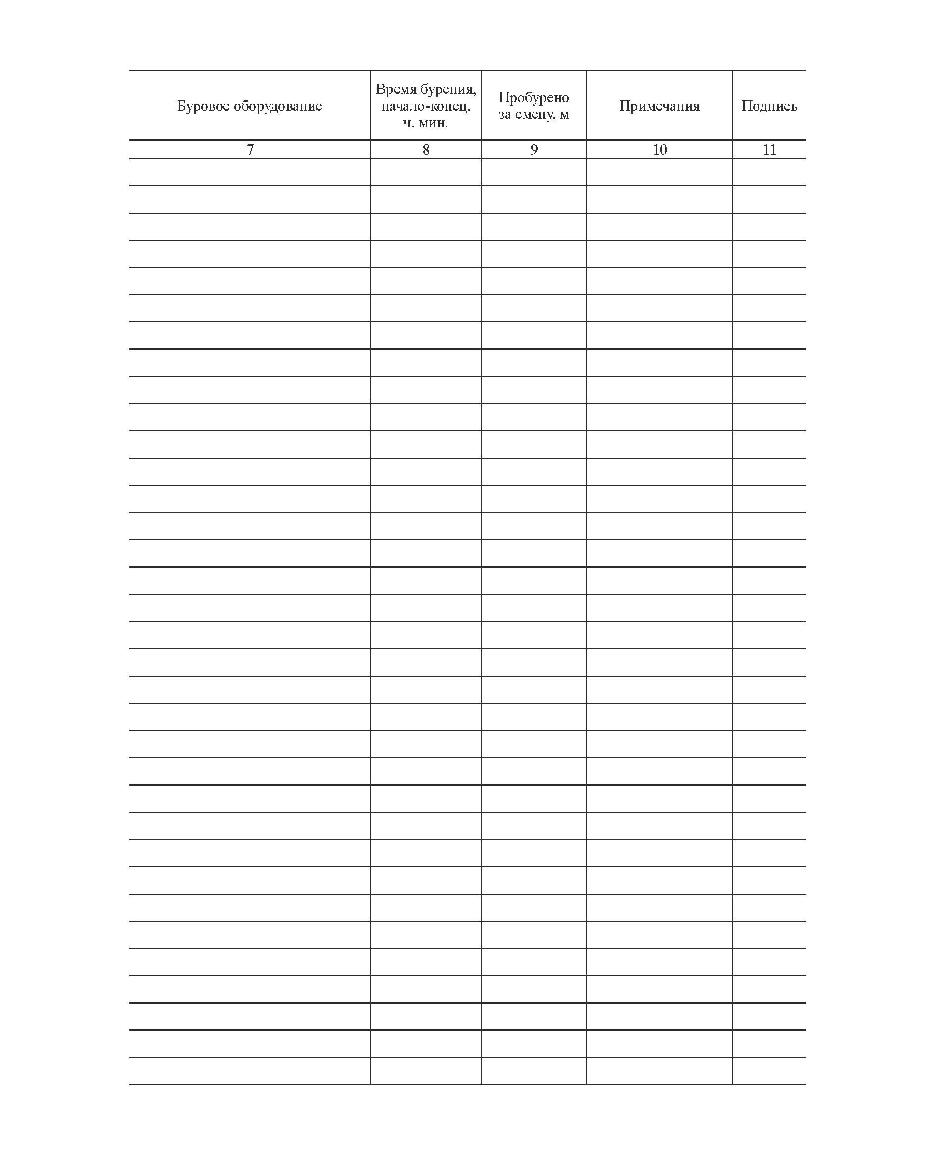 Графы для заполнения Журнала производства буровых работ: