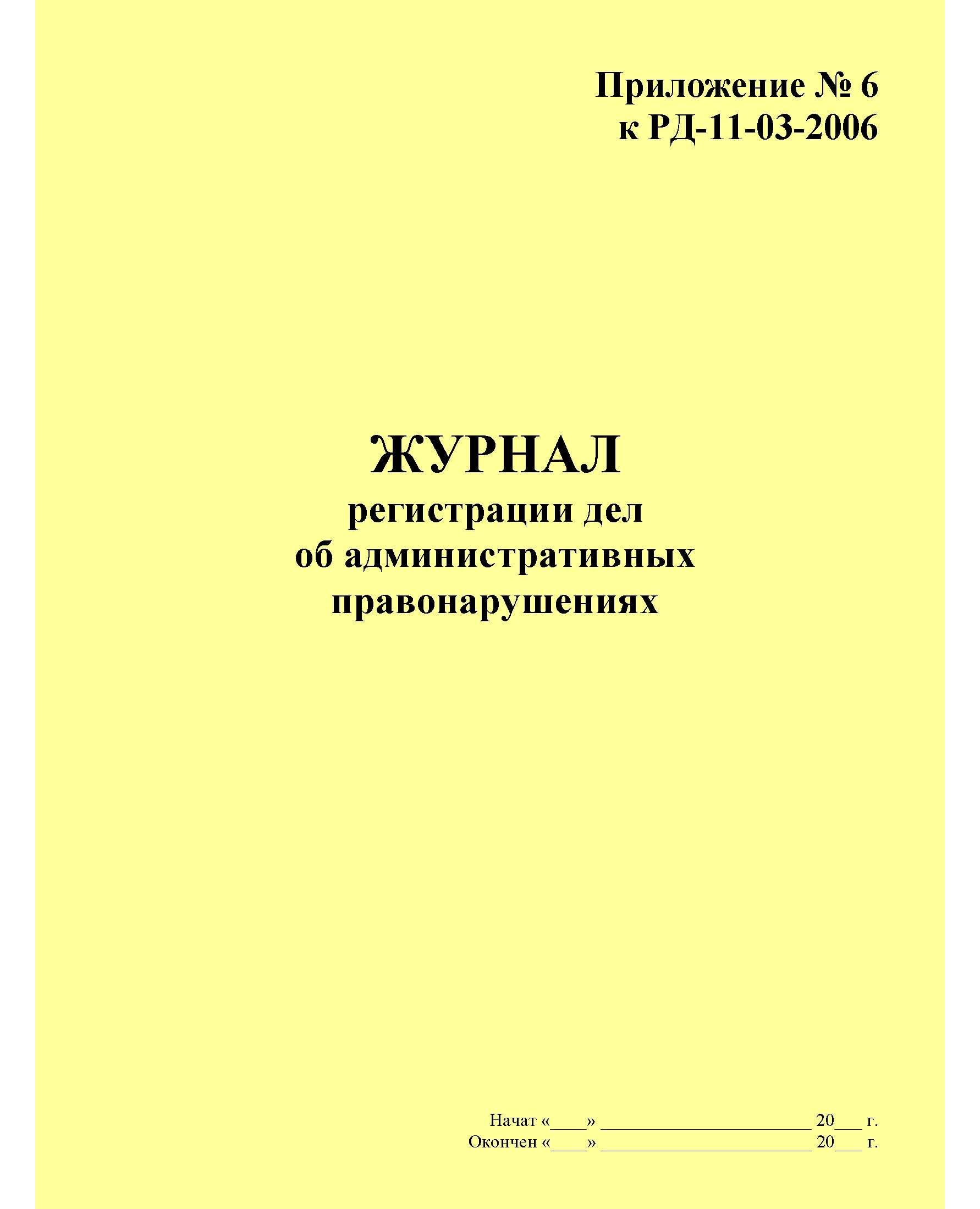 Журнал регистрации дел об административных правонарушениях. Приложение № 6 к РД-11-03-2006 в ред. Приказа Ростехнадзора от 21.10.2015 № 417 (прошитый, 100 страниц)