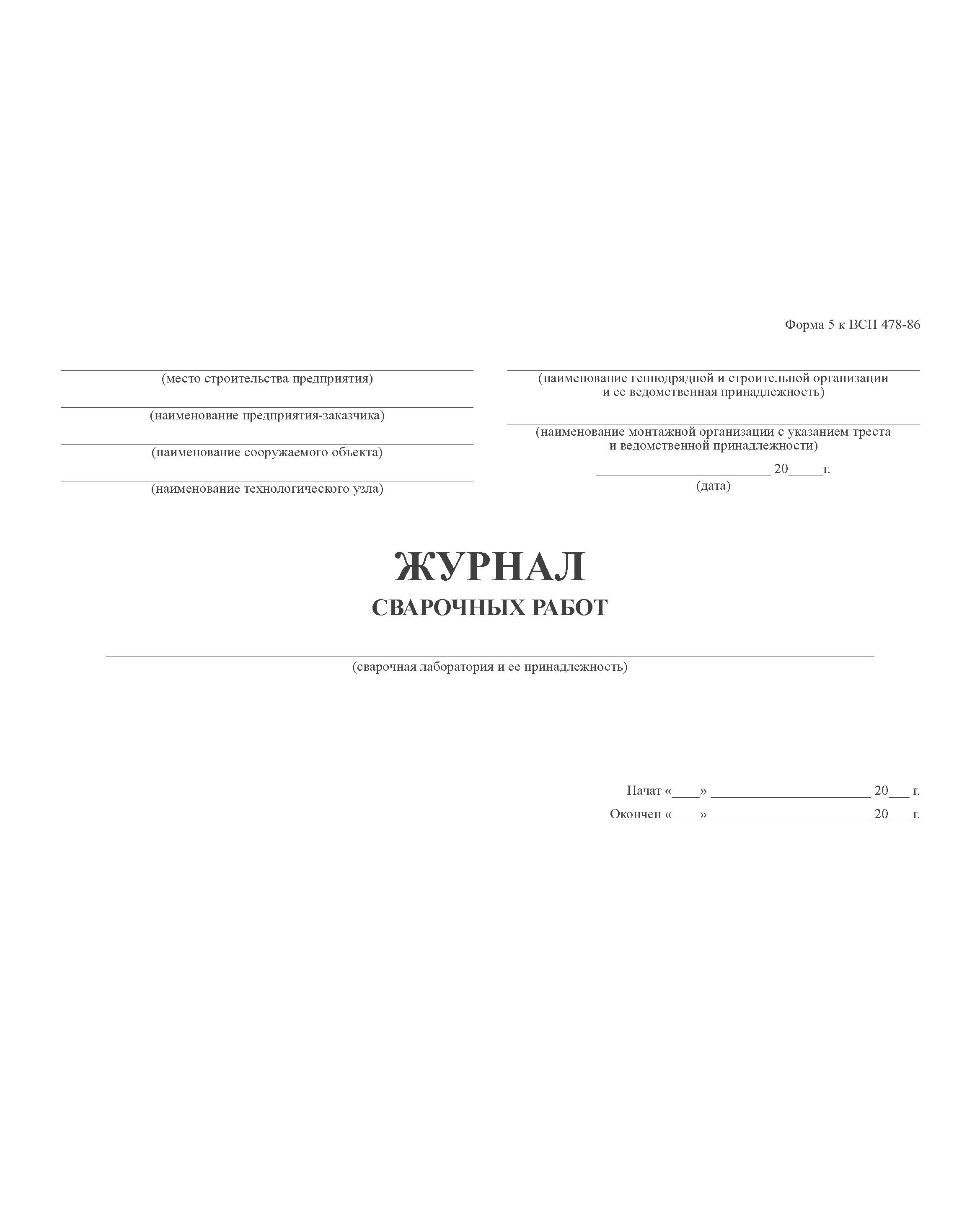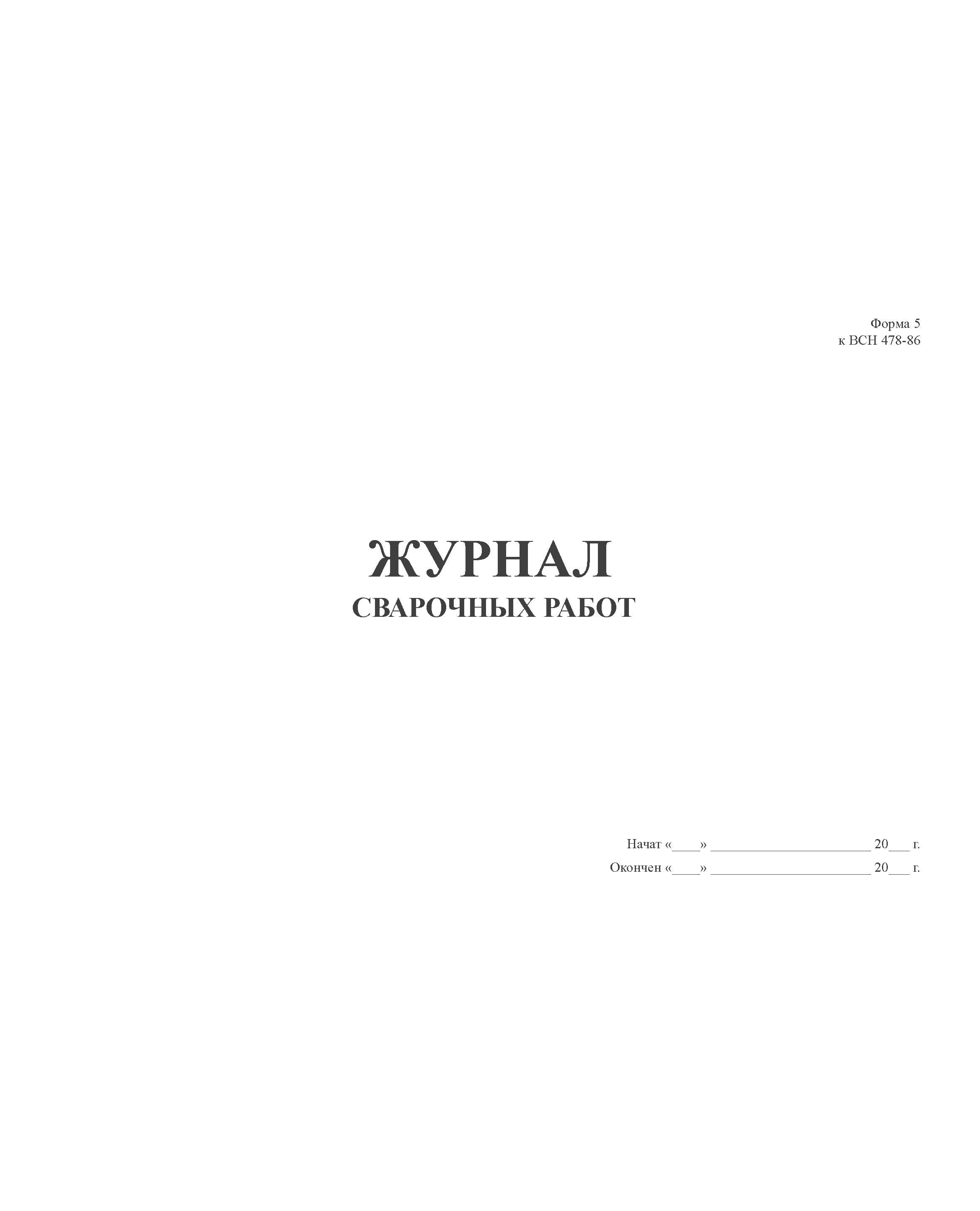 Журнал сварочных работ. Форма 5 к ВСН 478-86 (100 стр, прошитый, мягкий переплет)