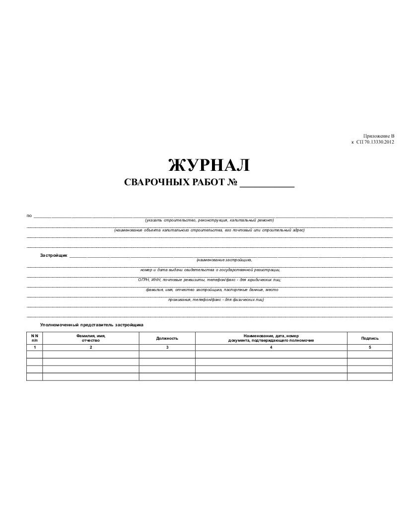 Журнал сварочных работ с вставкой начального раздела из Общего Журнала работ (Приложение Б к СП 70.13330.2012) (нумерованный, прошитый, 100 страниц)