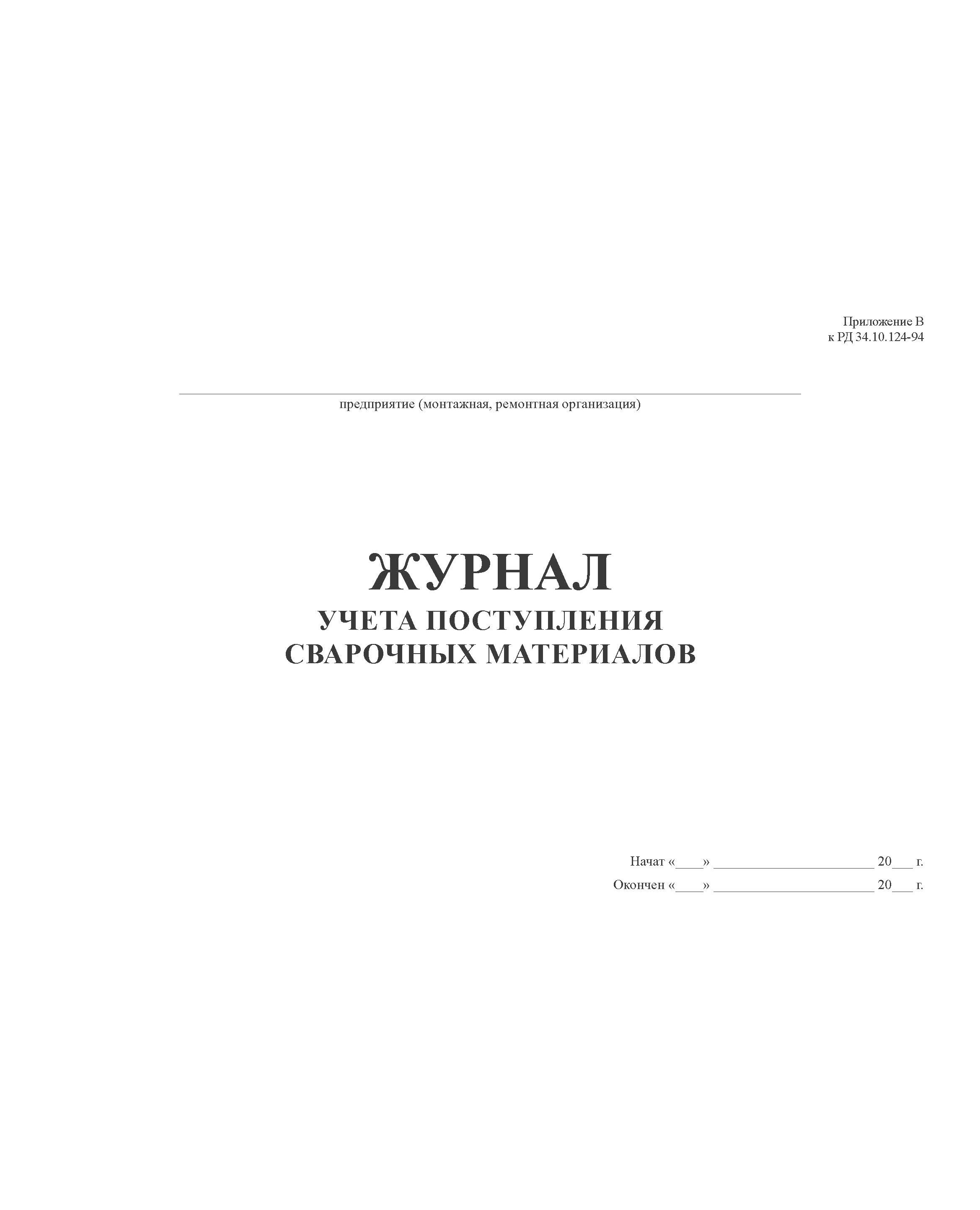 Журнал учета поступления сварочных материалов (100 стр, прошит) Форма журнала учета поступления сварочных материалов соответствует Приложению В к РД 34.10.124-94