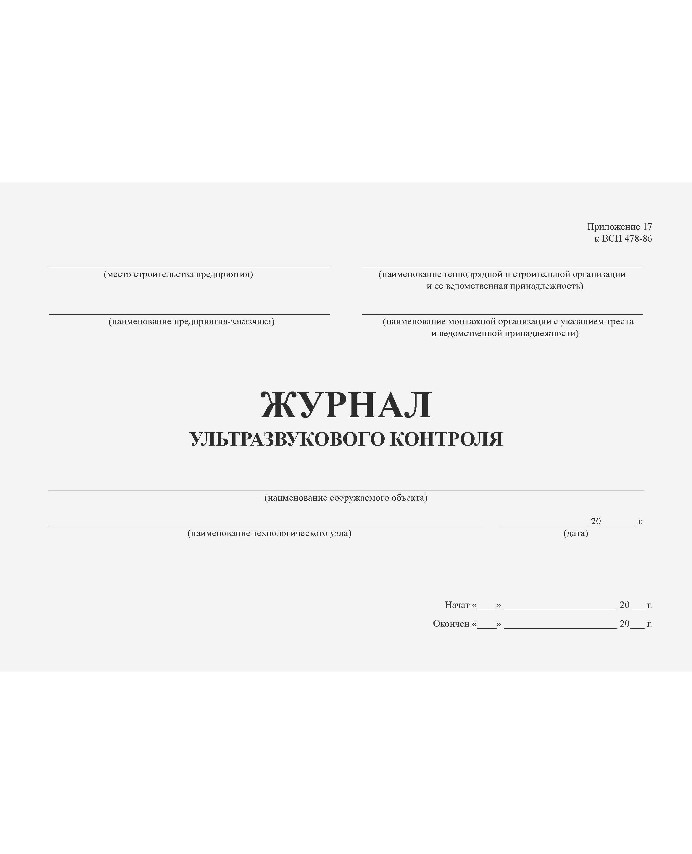 Журнал ультразвукового контроля. Приложение 17 к ВСН 478 (100 стр., прошитый)
