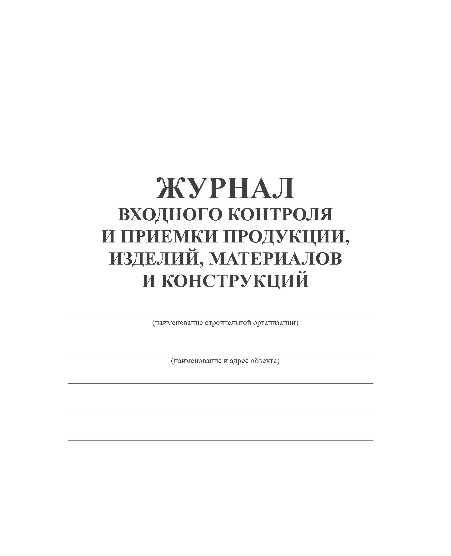 Журнала входного контроля и приемки продукции, изделий, материалов и конструкций (100 стр. прошитый, книжный)