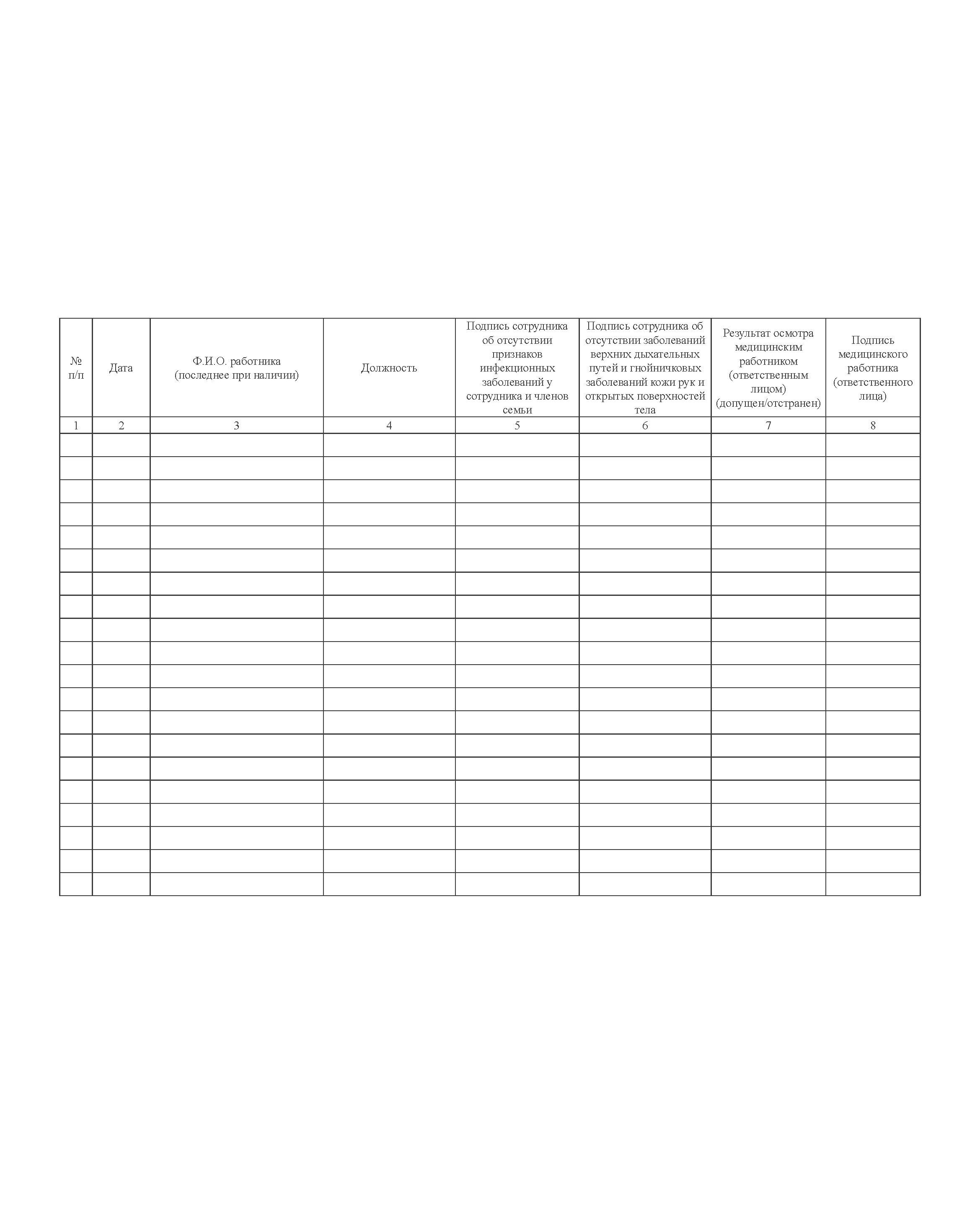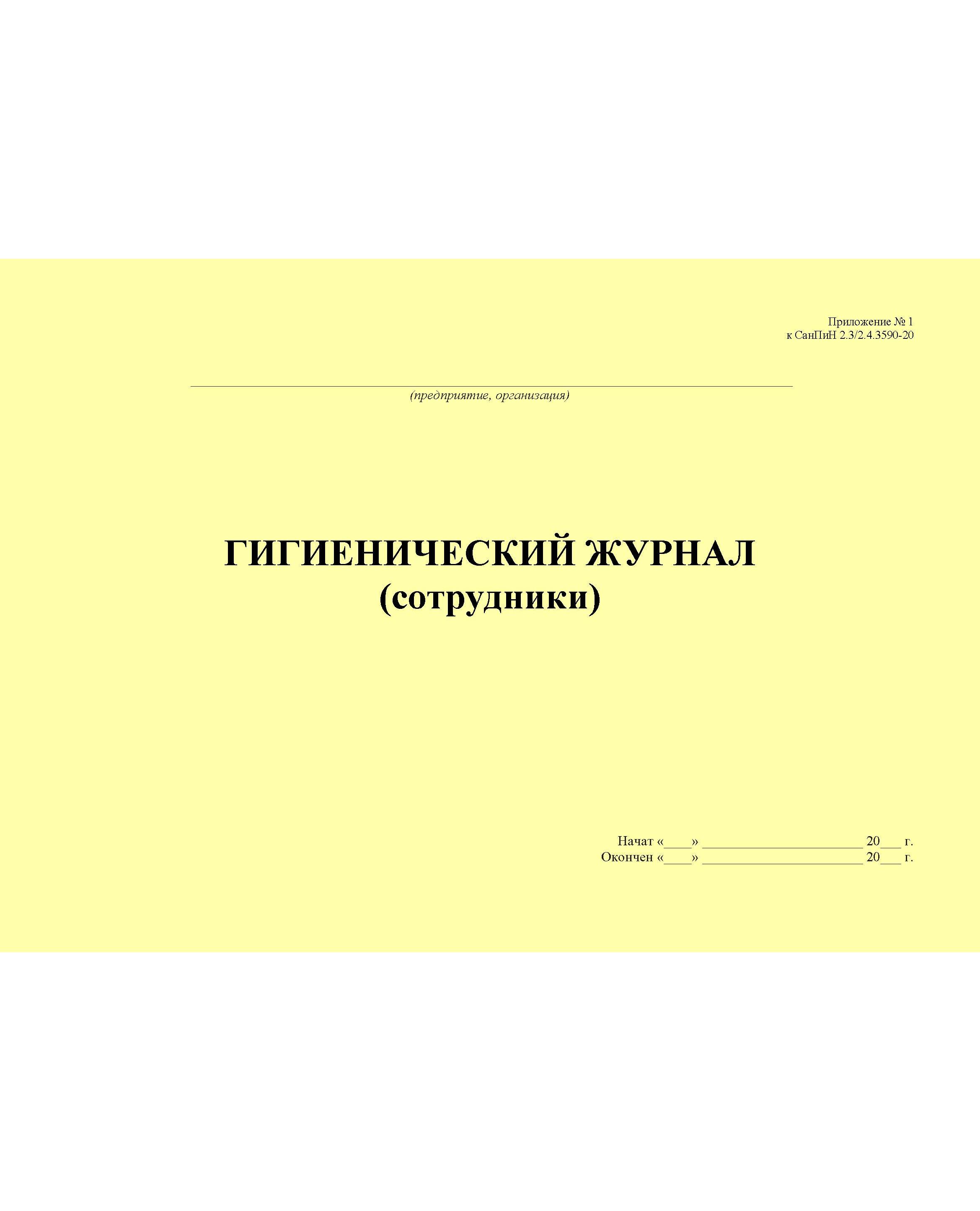 Гигиенический журнал (Сотрудники), приложение № 1 к СанПин 2.3/2.4.3590-20 (альбомный, 100 стр., прошитый, пронумерован)