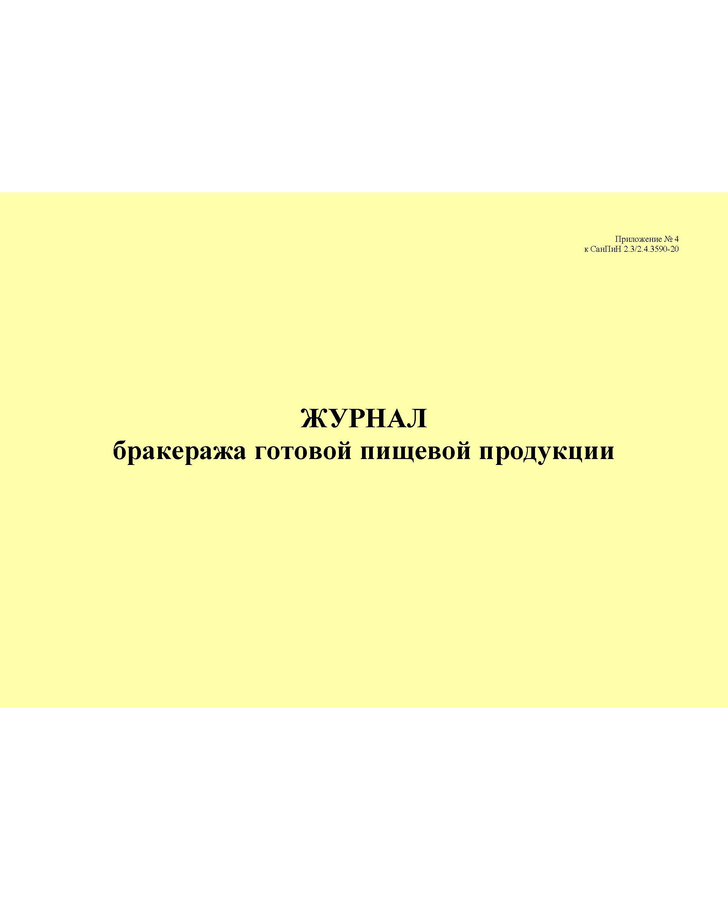 Журнал бракеража готовой пищевой продукции, приложение № 4 к СанПин 2.3/2.4.3590-20 (альбомный, 100 стр., прошитый)