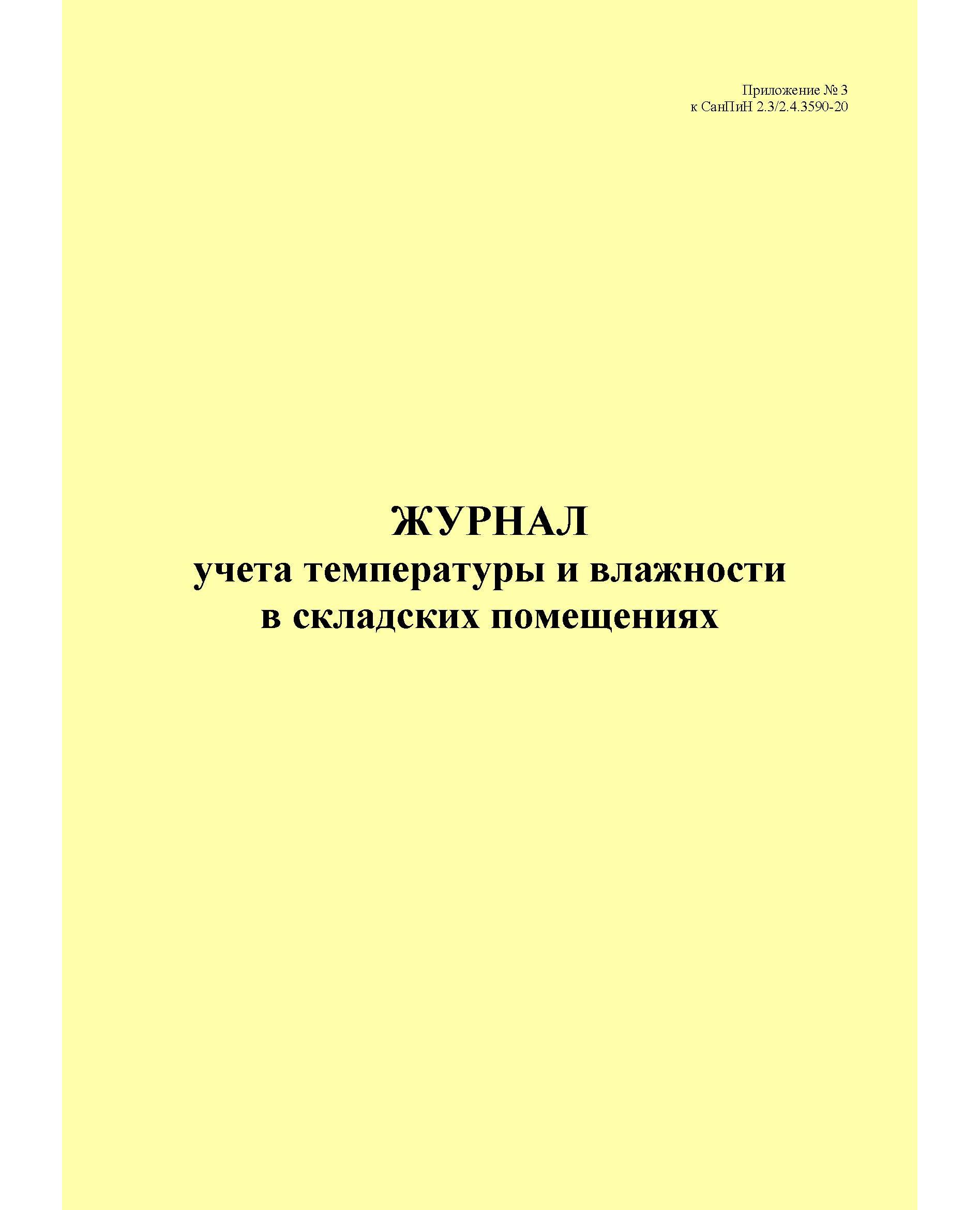 Журнал учета температуры и влажности в складских помещениях, приложение № 3 к СанПин 2.3/2.4.3590-20 (книжный, 100 стр., прошитый)