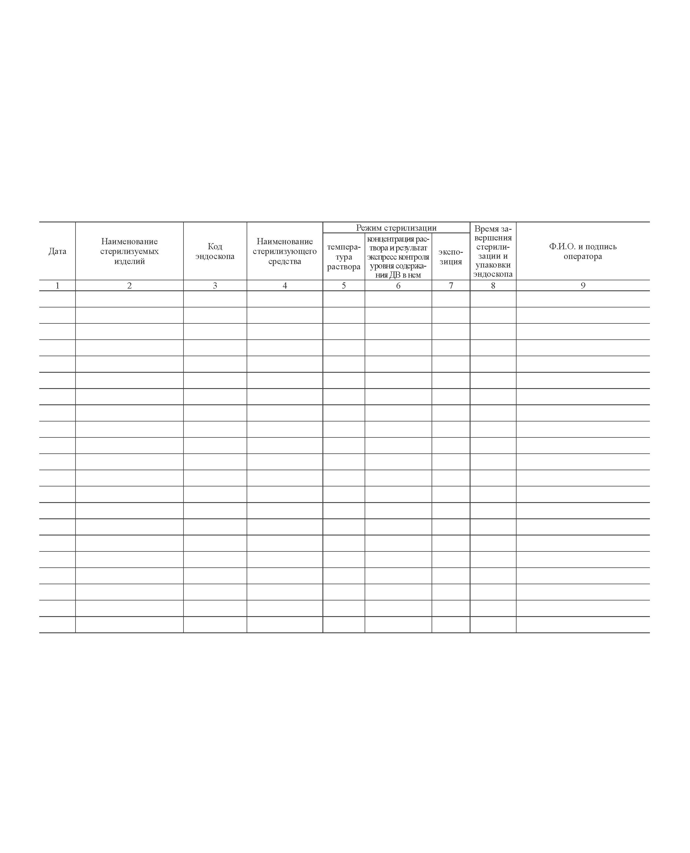 Журнал контроля стерилизации эндоскопического оборудования ручным способом. Приложение № 2 к СП 3.1.3263-15 «Профилактика инфекционных заболеваний при эндоскопических вмешательствах» (100 стр, прошитый)