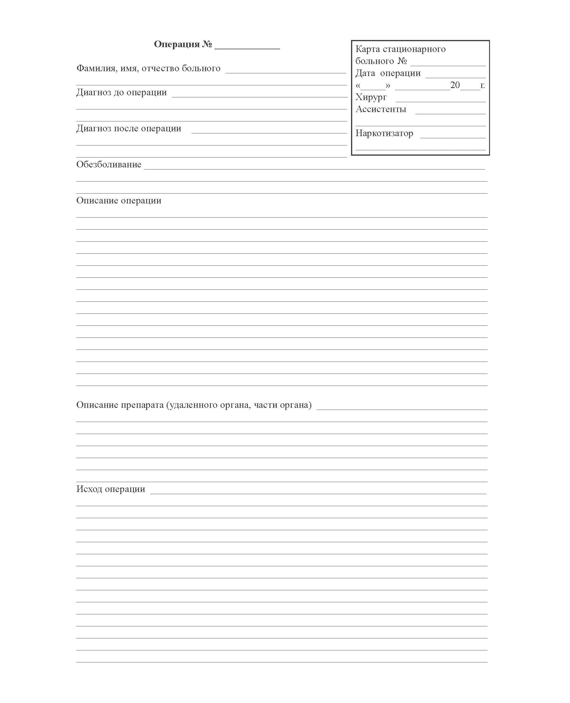Журнал записи оперативных вмешательств в стационаре. Форма № 008/у. Утверждена Минздравом СССР 04.10.80 г. № 1030 (прошитый, 48 страниц)