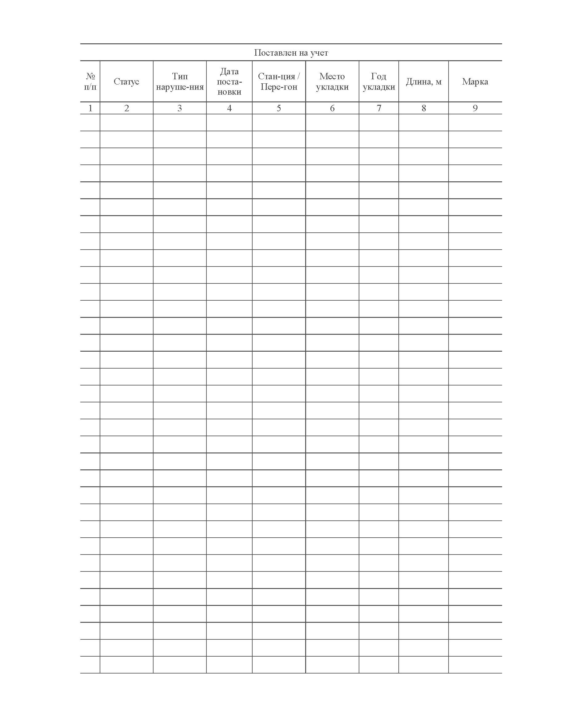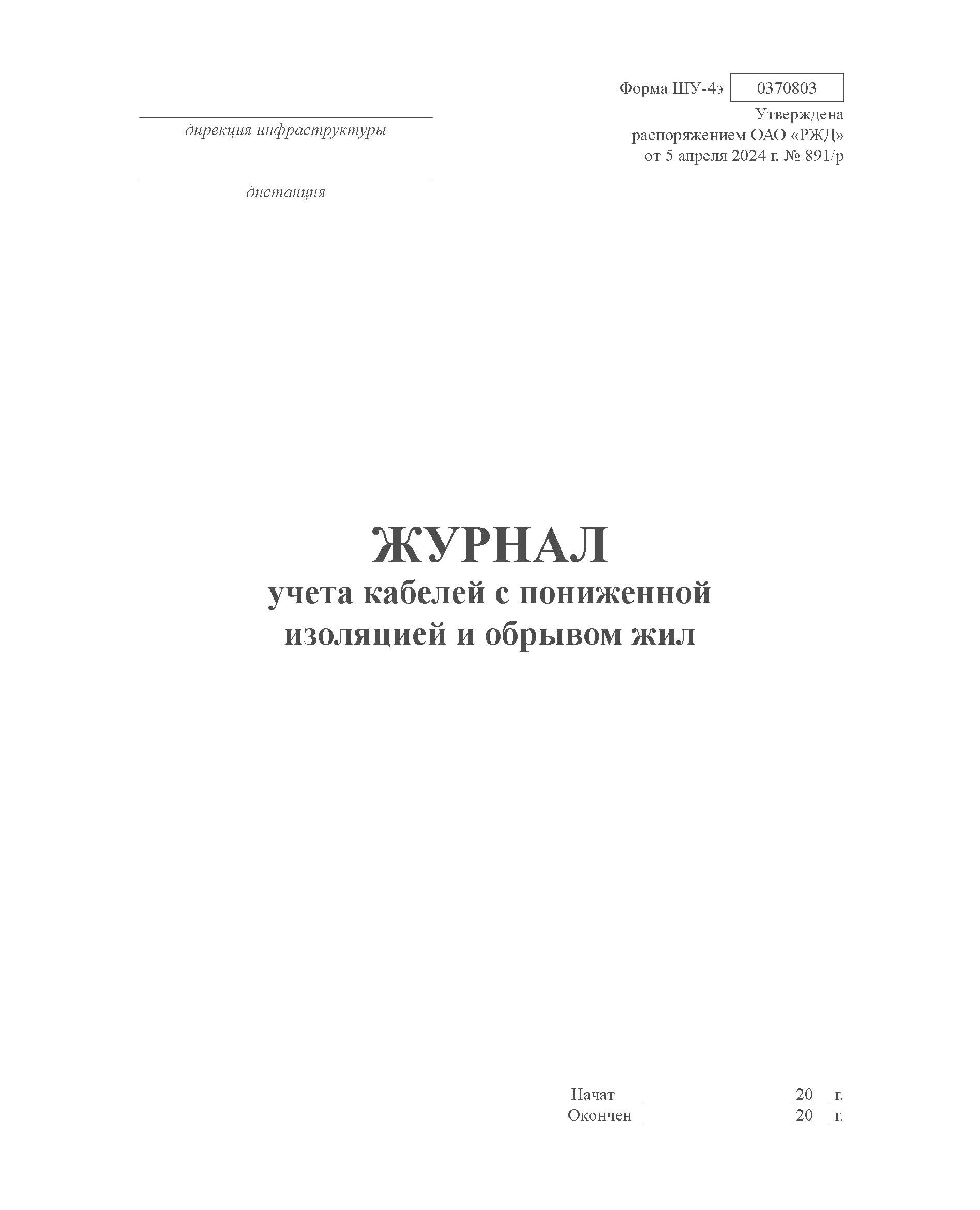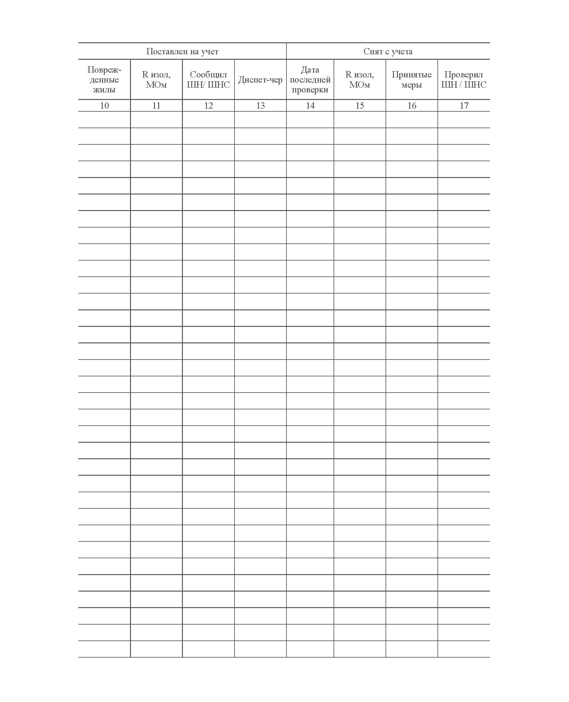 Журнал по форме ШУ-4э предназначен для записей о постановке на учет кабеля с внутренним обрывом жил, с пониженным сопротивлением изоляции жил (ниже нормы, но не ниже 15 МОм), а также контроль кабеля с сопротивлением изоляции жил ниже 15 МОм.