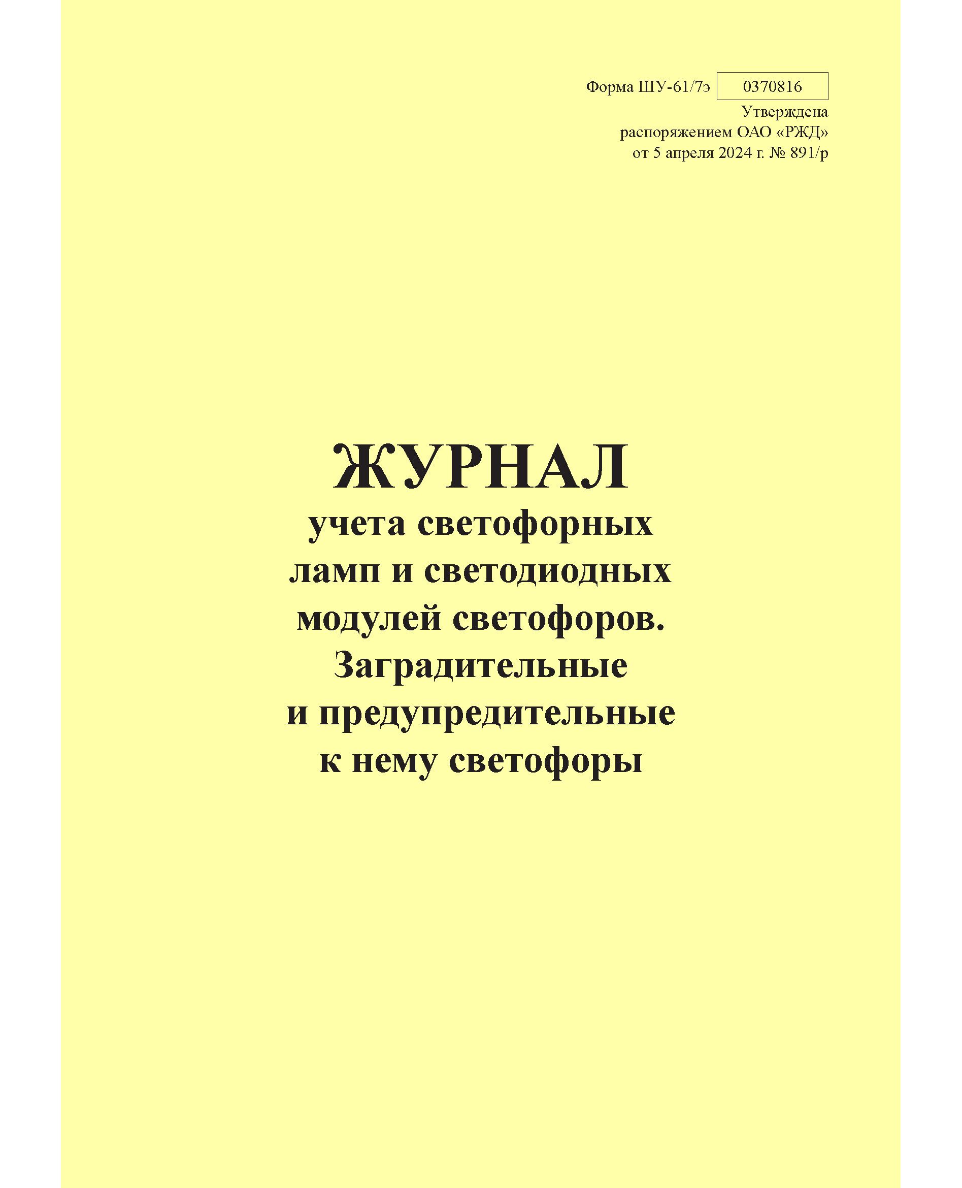 Журнал предназначен для оформления результатов выполненных работ по смене ламп накаливания и светодиодных модулей, а также результатов измерений на лампах и светодиодных модулях, установленных на заградительных светофорах и предупредительных к ним.