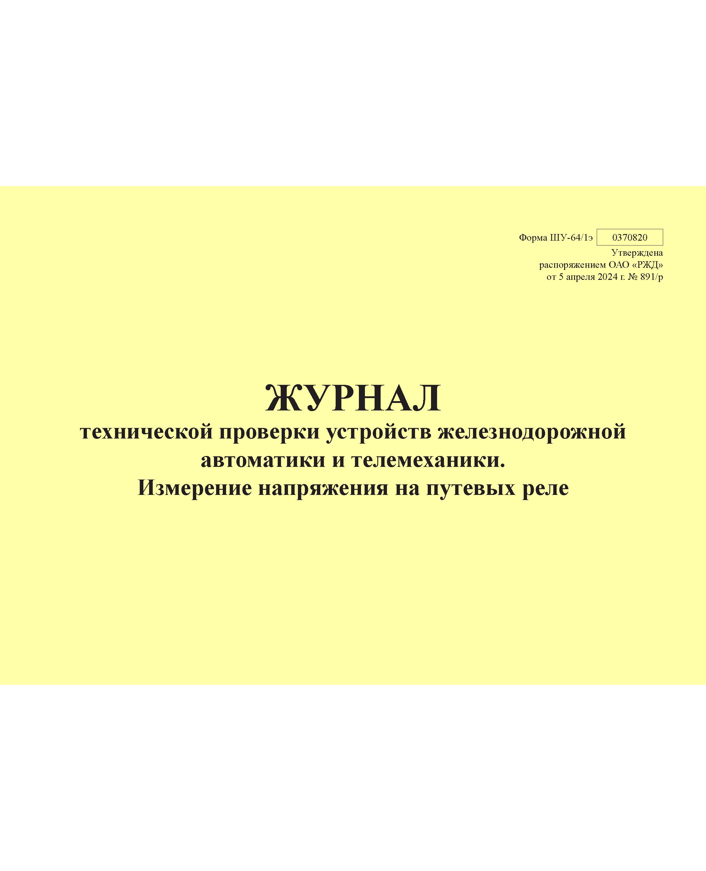 Журнал предназначен для оформления результатов измерений напряжения на вторичной обмотке питающего трансформатора и на путевом реле в нормальном и шунтовом режиме работы разветвленных рельсовых цепей с частотой сигнального тока не более 75 Гц.