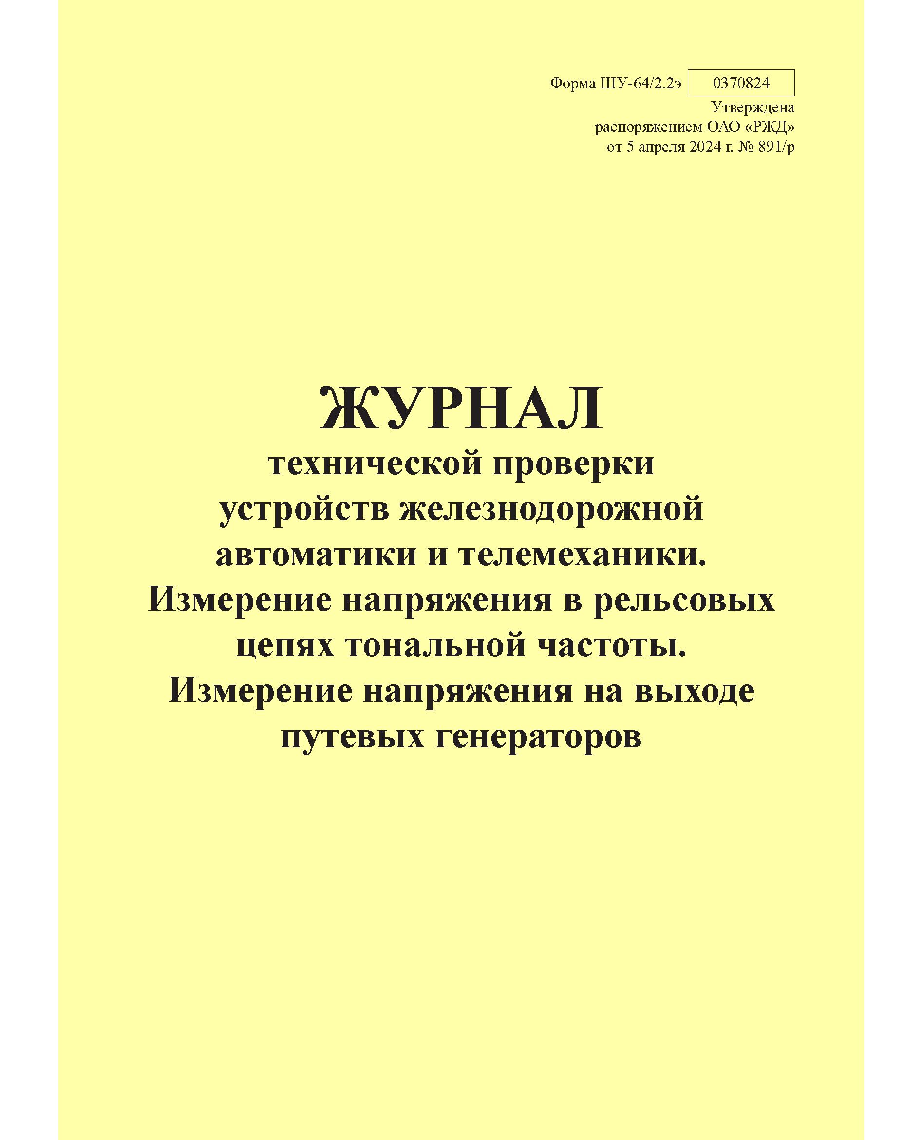 Журнал предназначен для оформления результатов по измерению напряжения на выходе путевых генераторов и на вторичной обмотке кодовых трансформаторов КТ рельсовых цепей тональной частоты.