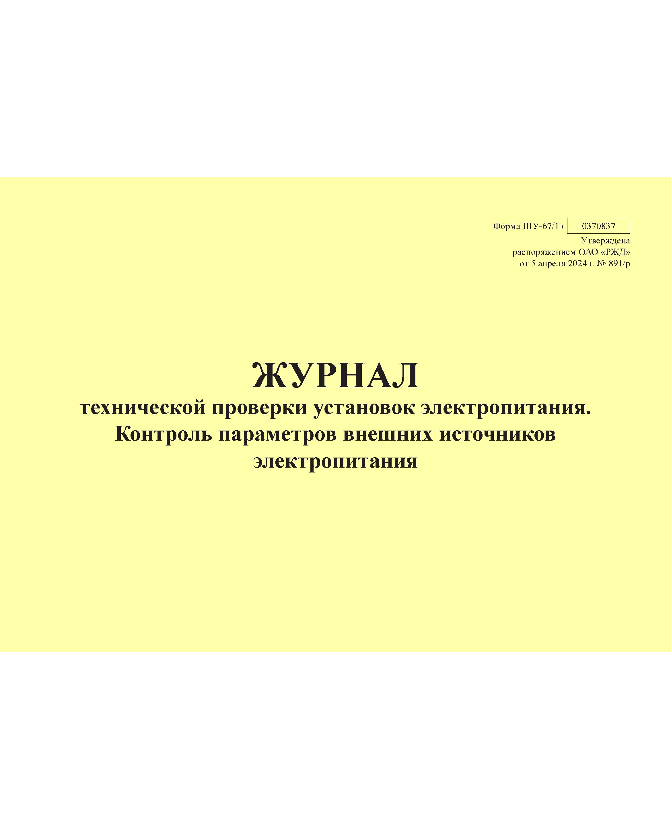 Журнал предназначен для записи результатов выполненных работ по проверке параметров установок электропитания устройств устройств железнодорожной автоматики и телемеханики на постах электрической централизации, горочной автоматической централизации, диспетчерской централизации, и в транспортабельных модулях автоблокировки с тональными рельсовыми цепями, микропроцессорной централизации.