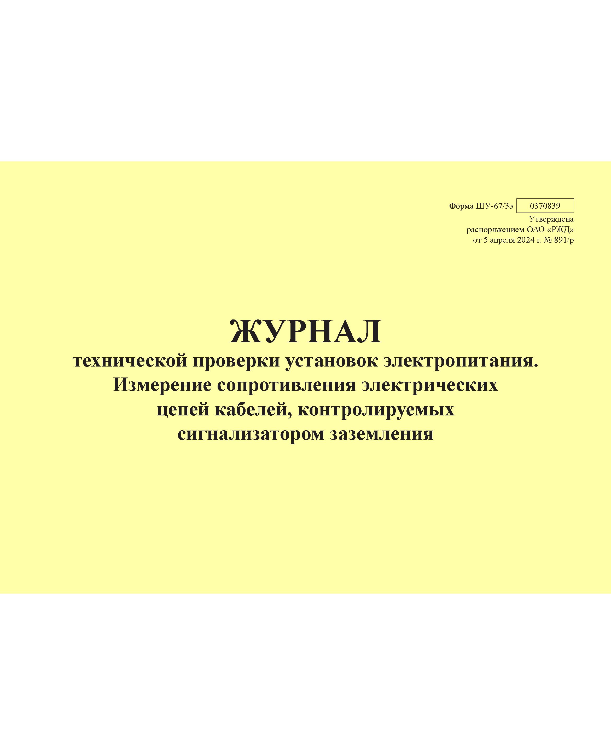 Журнал предназначен для записи результатов измерений параметров установок электропитания устройств железнодорожной автоматики и телемеханики на постах электрической централизации, горочной автоматической централизации, диспетчерской централизации, и в транспортабельных модулях автоматической блокировки с тональными рельсовыми цепями, микропроцессорной централизации.