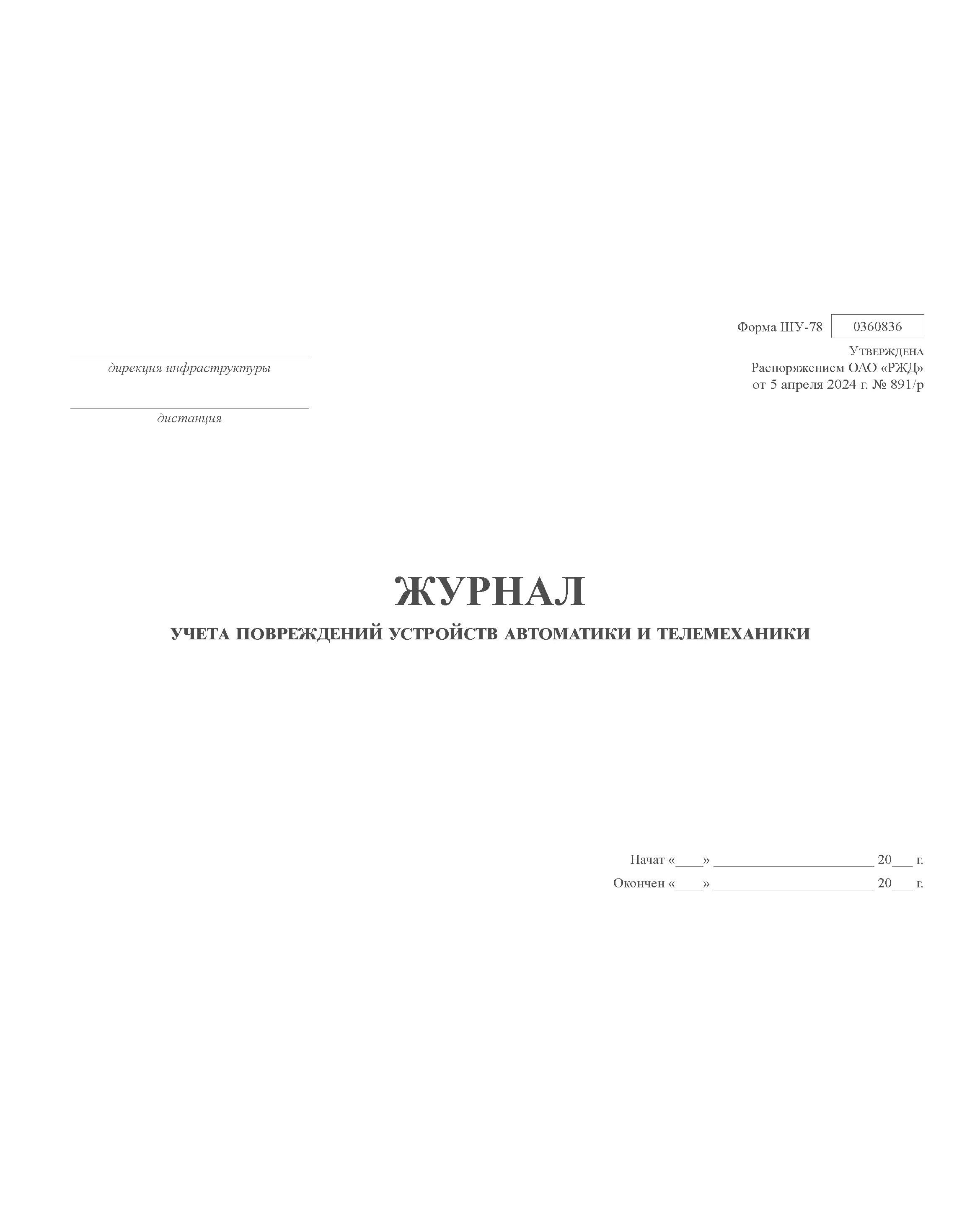 Журнал предназначен для оформления записей о повреждении устройств железнодорожной автоматики и телемеханики и последующего анализа с целью принятия соответствующих предупредительных мер.