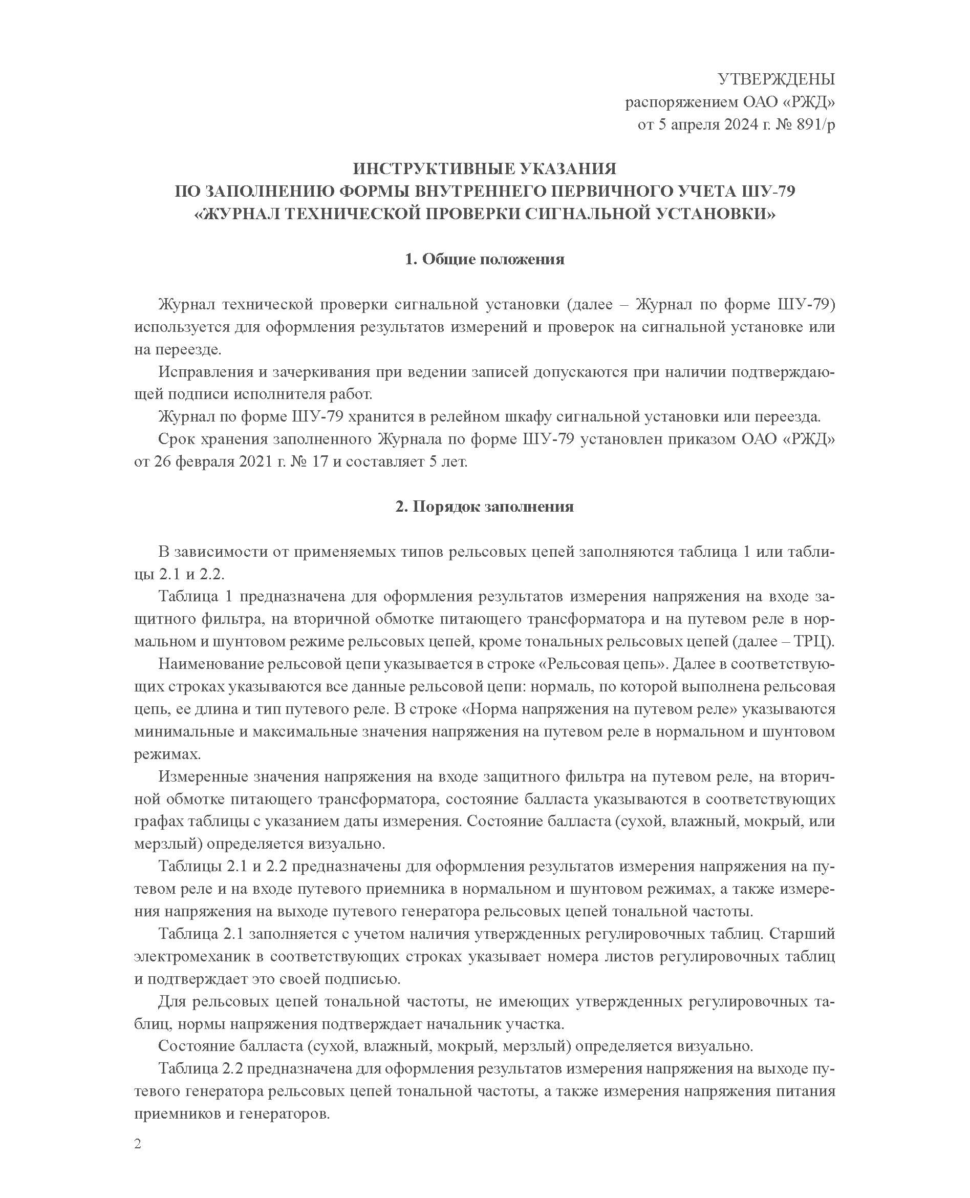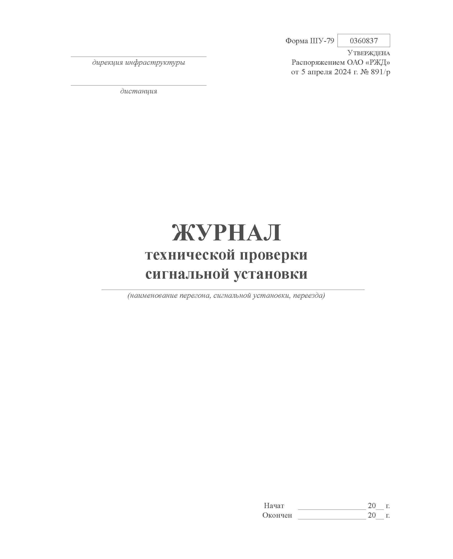 Форма ШУ-79. Журнал технической проверки сигнальной установки, утв. Распоряжением ОАО "РЖД" от 05.04.2024 № 891/р (книжный, нумерованный, прошитый, 104 стр.)