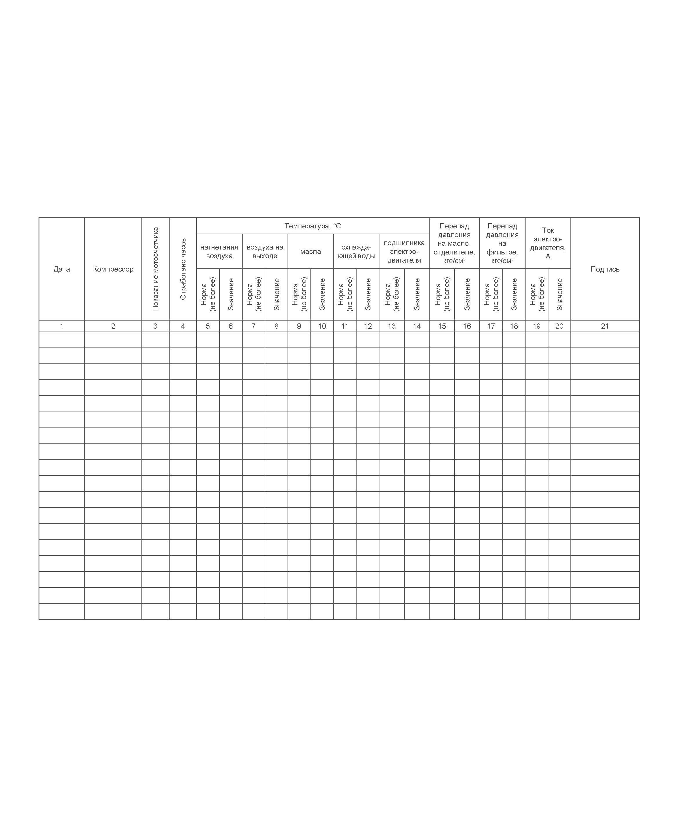 Журнал ведется машинистом компрессорной станции и контролируется старшим электромехаником (электромехаником).