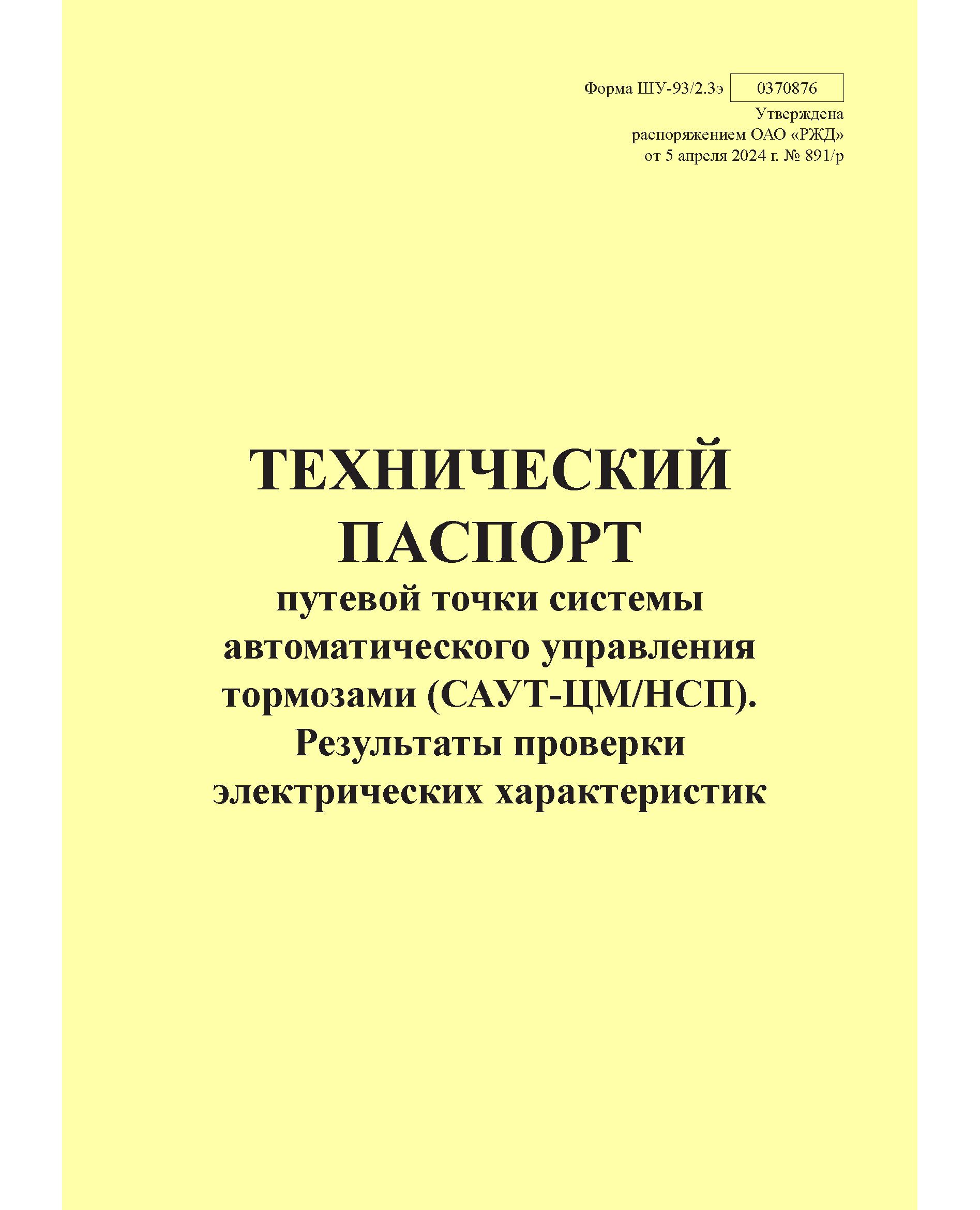 Технический паспорт предназначен для оформления результатов измерения электрических характеристик путевой точки системы автоматического управления тормозами.