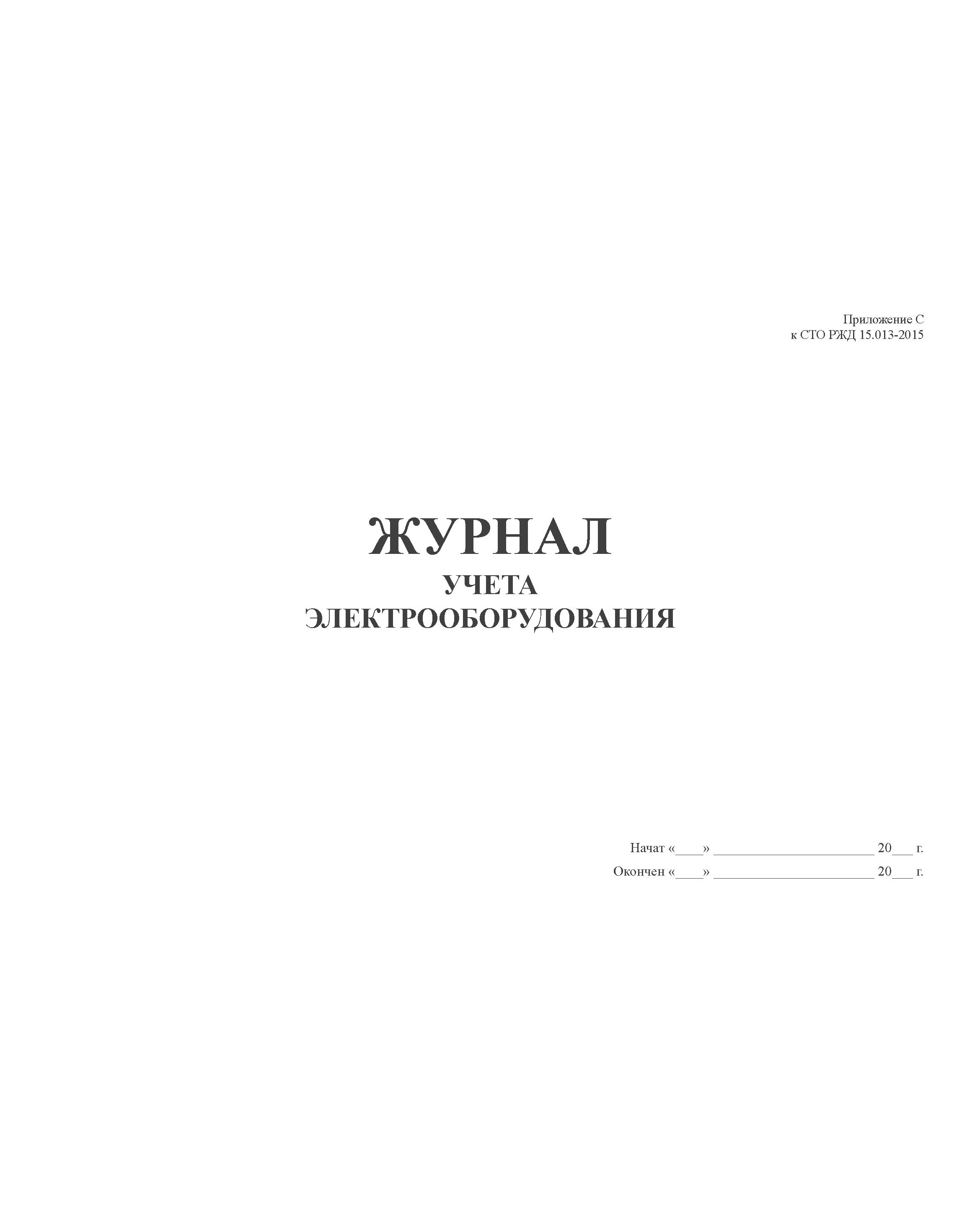 Приложение С к СТО РЖД 15.013-2021. Журнал учета электрооборудования. (прошитый, 100 страниц)