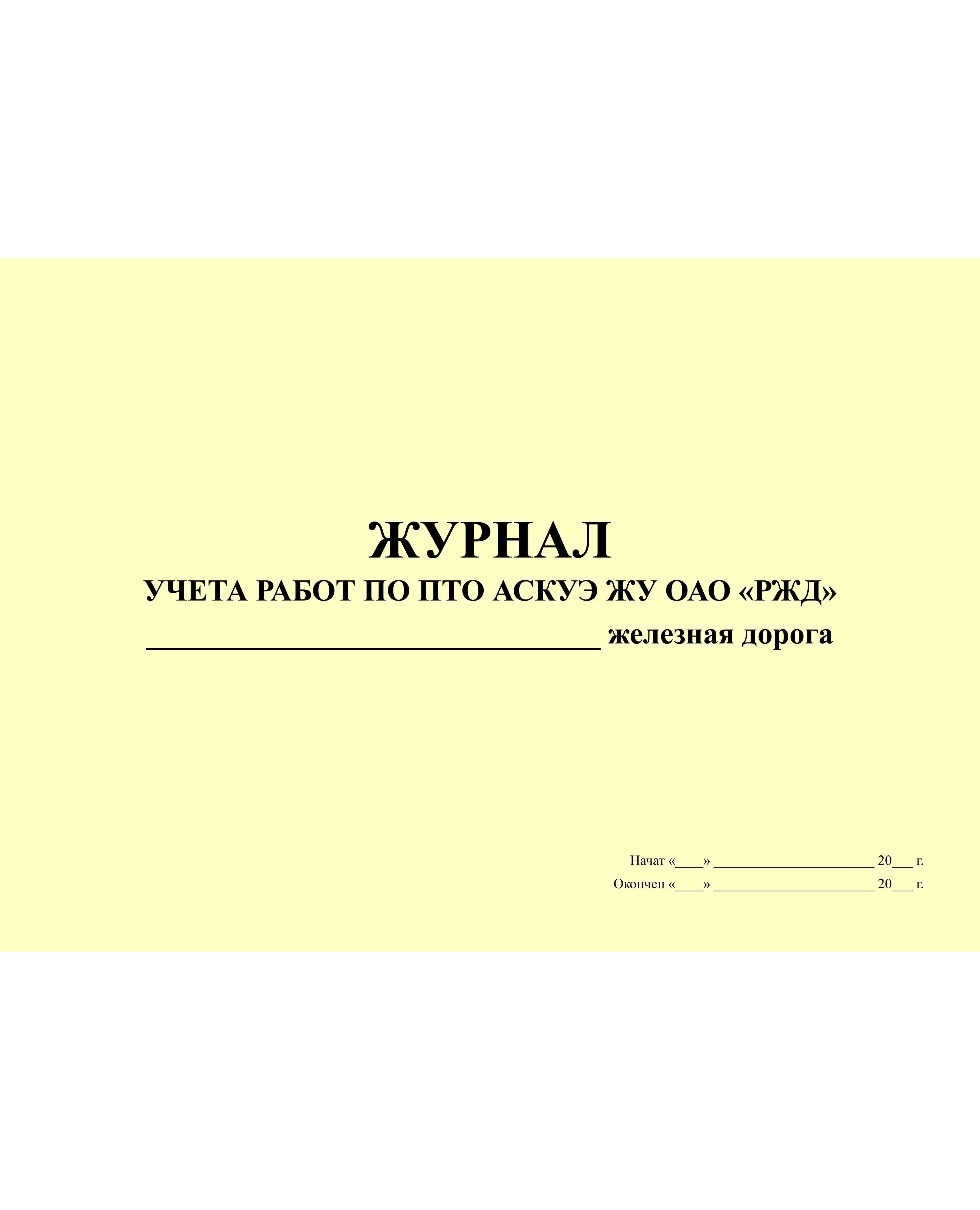 Журнал учета работ по ПТО АСКУЭ ЖУ ОАО "РЖД". Приложение N 1 к Регламенту (АСКУЭ ЖУ) ОАО "РЖД" от 20.08.2015 № 374, (прошитый, 100 страниц)