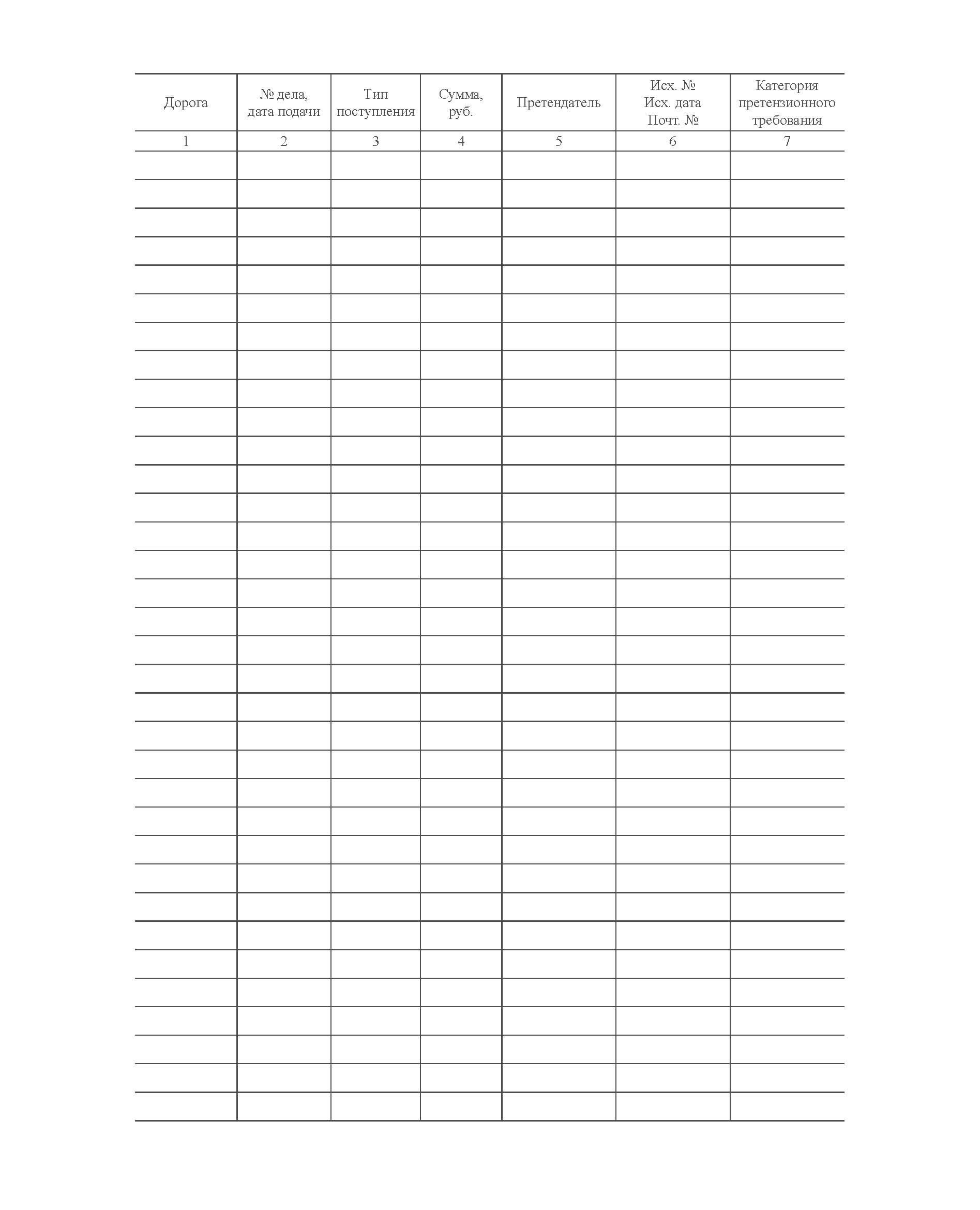 Форма ГАУ-1ВЦ. Книга регистрации входящих претензий. Утверждена Распоряжением ОАО "РЖД" от 26.12.2023 № 3317/р