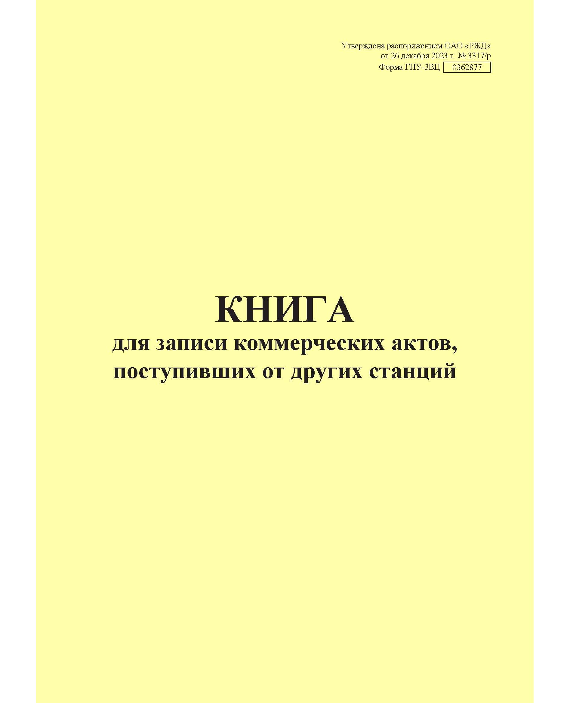 Форма ГНУ-3ВЦ. Книга для записи коммерческих актов, поступивших от других станций. Утверждена распоряжением ОАО "РЖД" от 26 декабря 2023 г. № 3317/р (прошитый, 100 страниц)