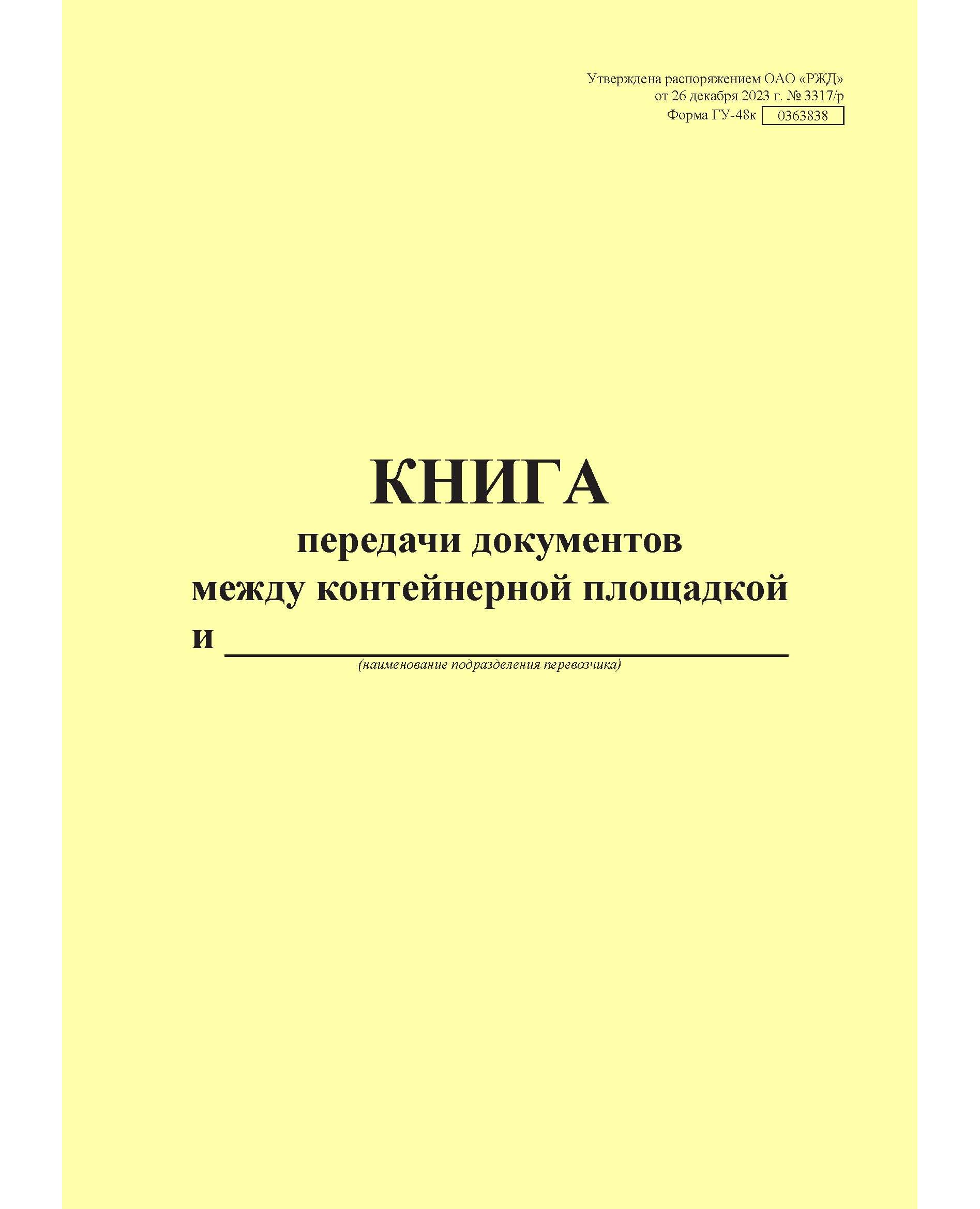 Форма ГУ-48к. Книга передачи документов. Утверждена распоряжением ОАО "РЖД" от 26 декабря 2023 г. № 3317/р (прошитый, 100 страниц)