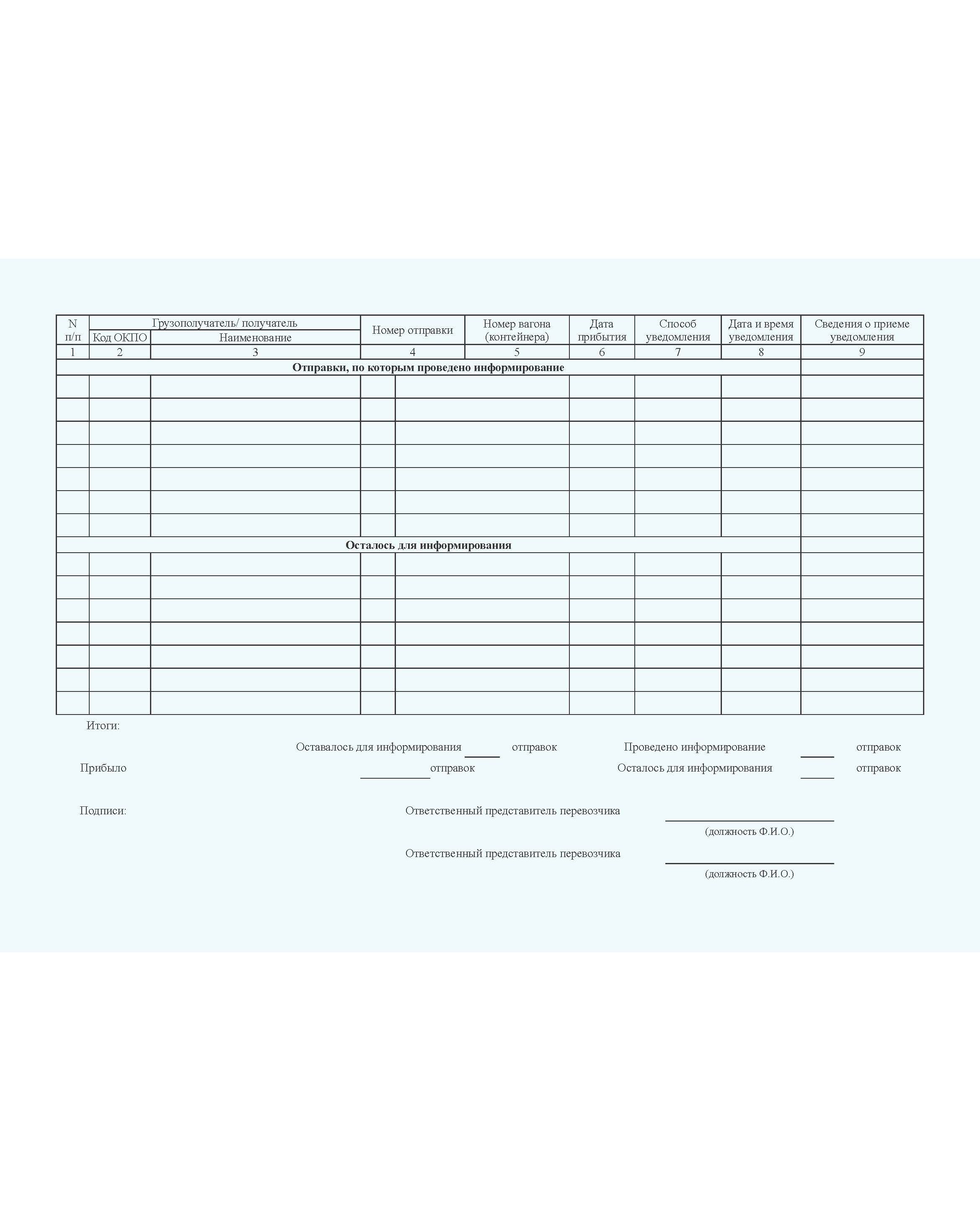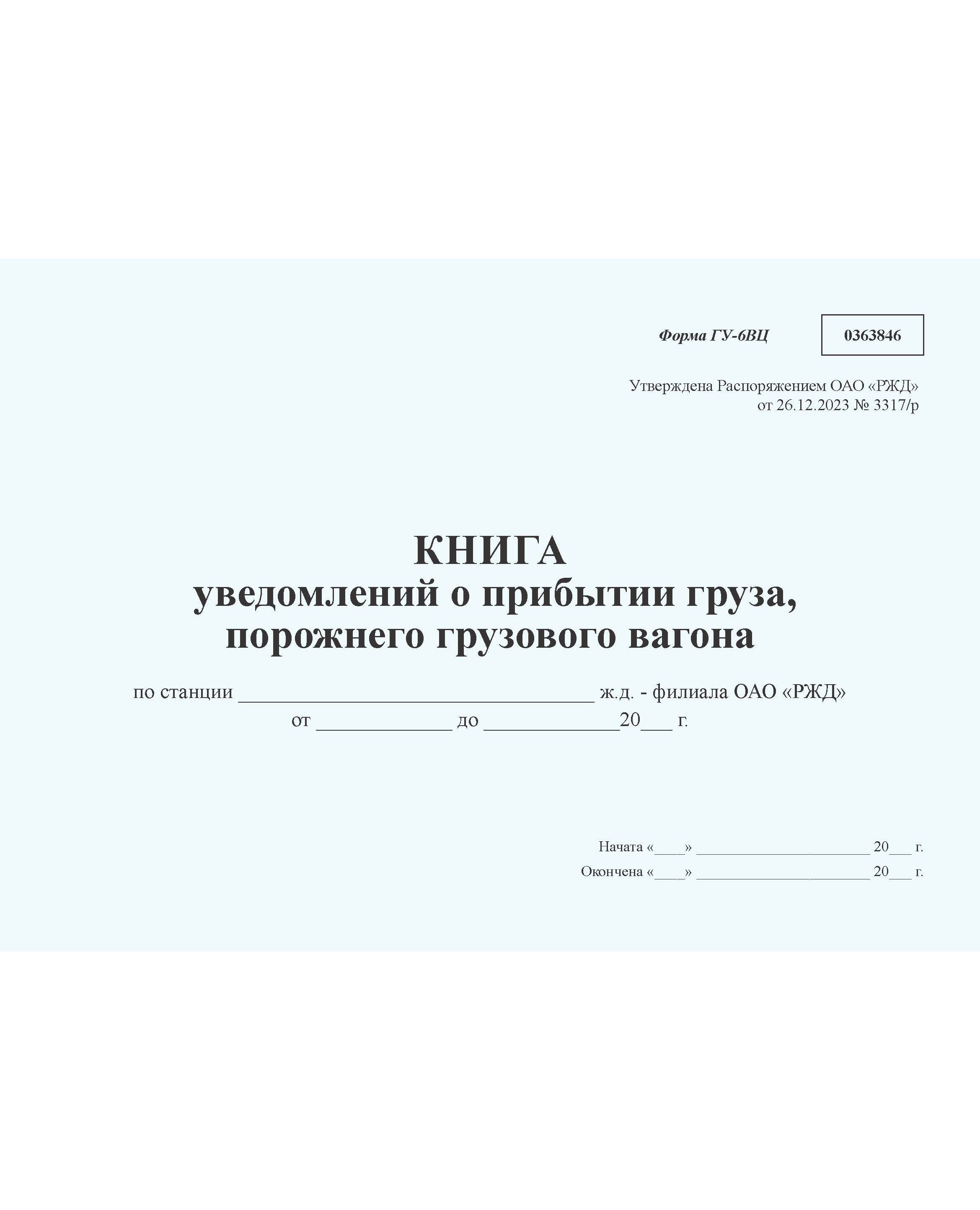 Книга уведомлений о прибытии груза, порожнего грузового вагона формы ГУ-6ВЦ. Утверждена Распоряжением ОАО "РЖД" от 26.12.2023 № 3317/р