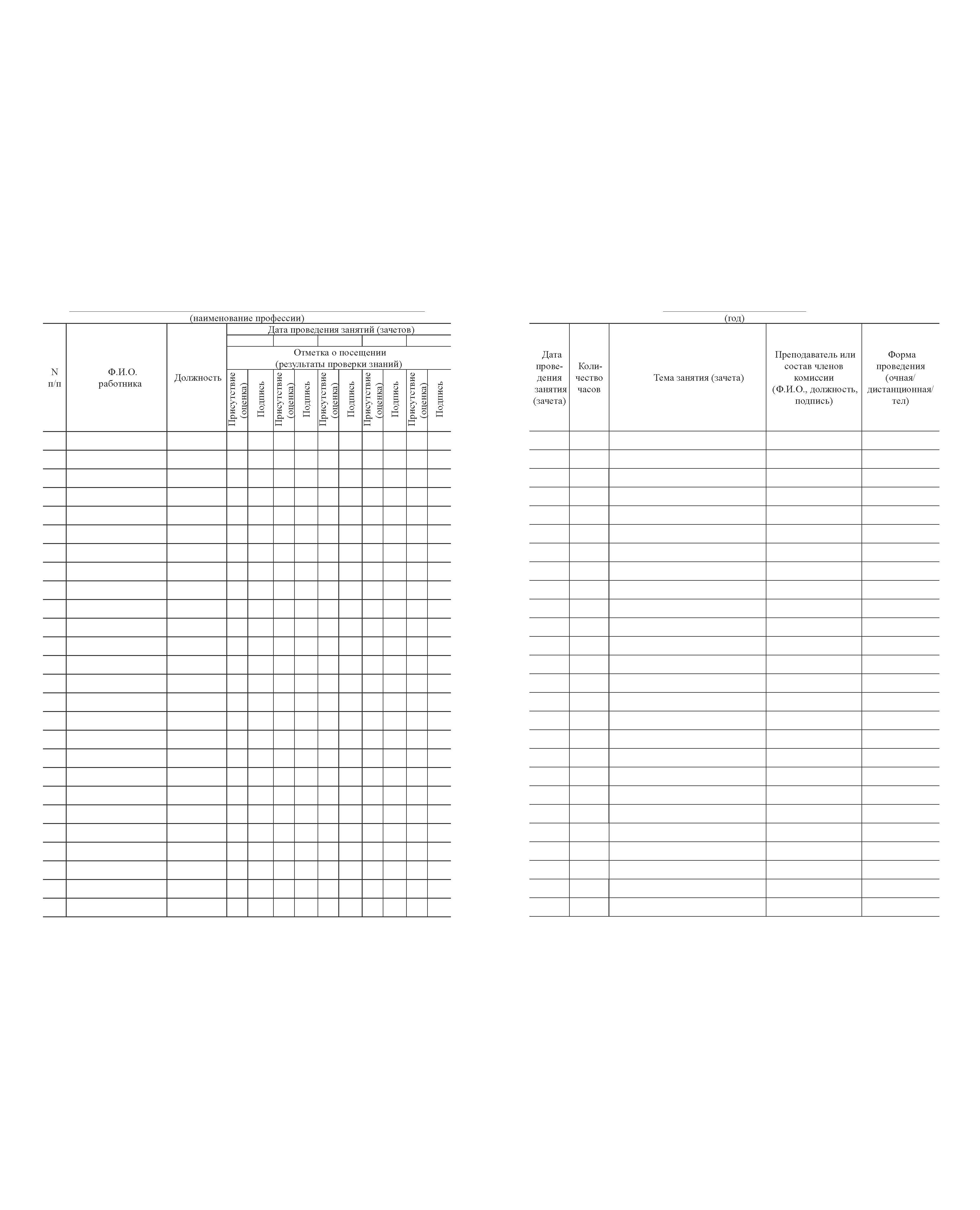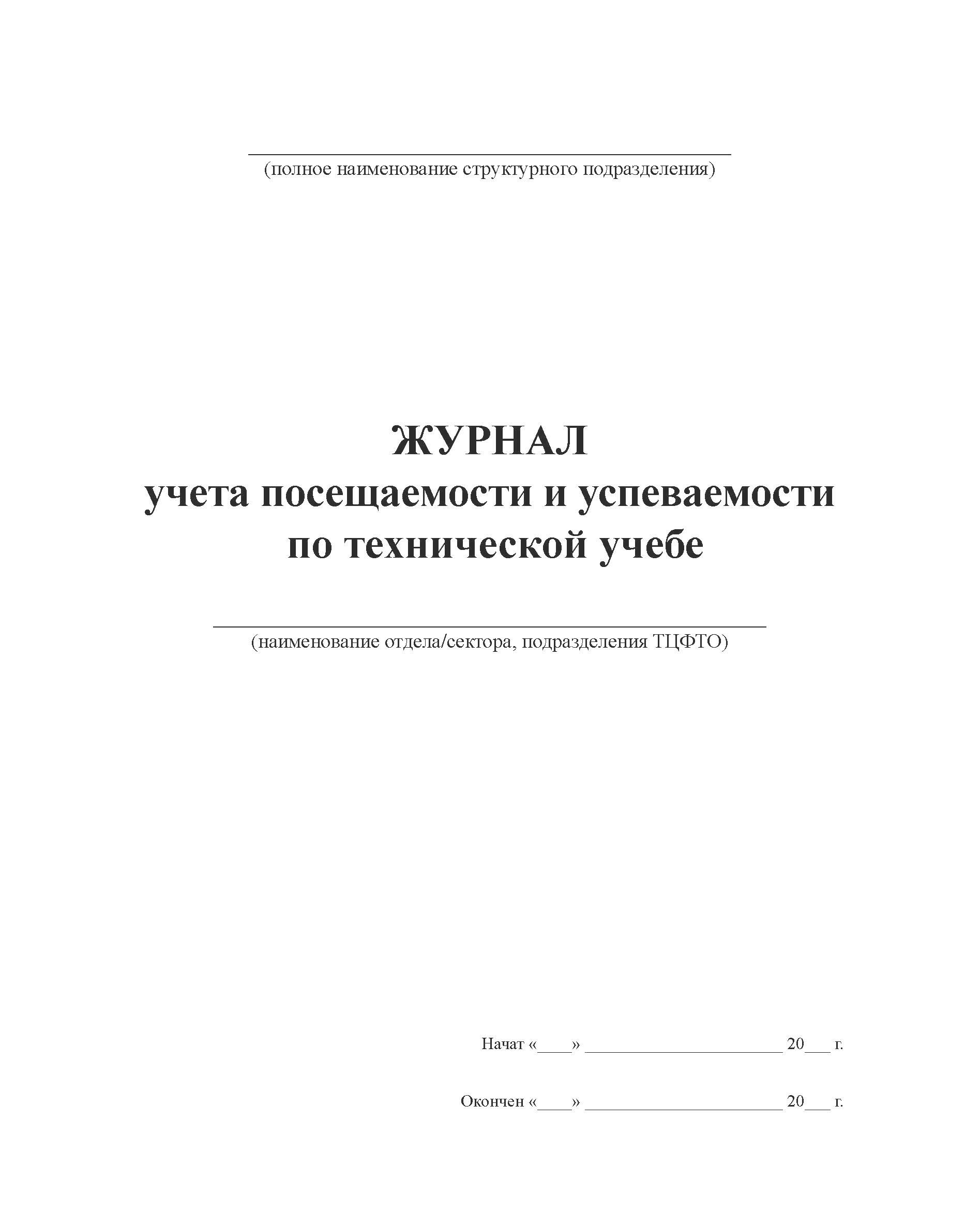 Журнал учета посещаемости и успеваемости по технической учебе отдела/сектора, подразделения ТЦФТО. Приложение № 3 к Распоряжению ОАО "РЖД" от 12.10.2015 № 2433р, (прошитый, 100 страниц)
