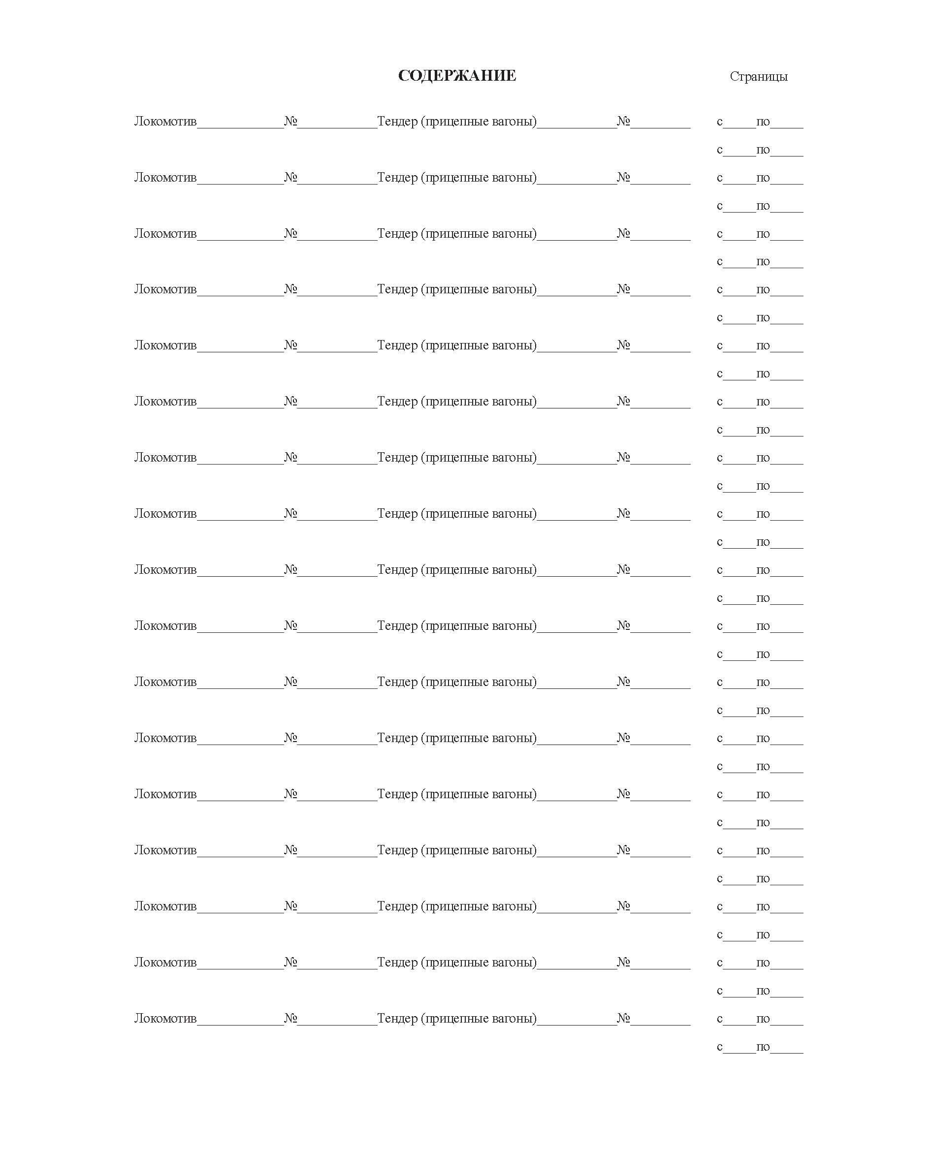 Для каждой единицы тягового подвижного состава в книге выделяются отдельные страницы, что отражается в содержании в конце книги. С целью удобства пользования допускается выделять отдельные страницы для каждой секции локомотива и вагона МВПС. Допускается вести записи замеров многосекционных локомотивов и МВПС на смежных страницах (на развороте), совмещая записи по вертикали.