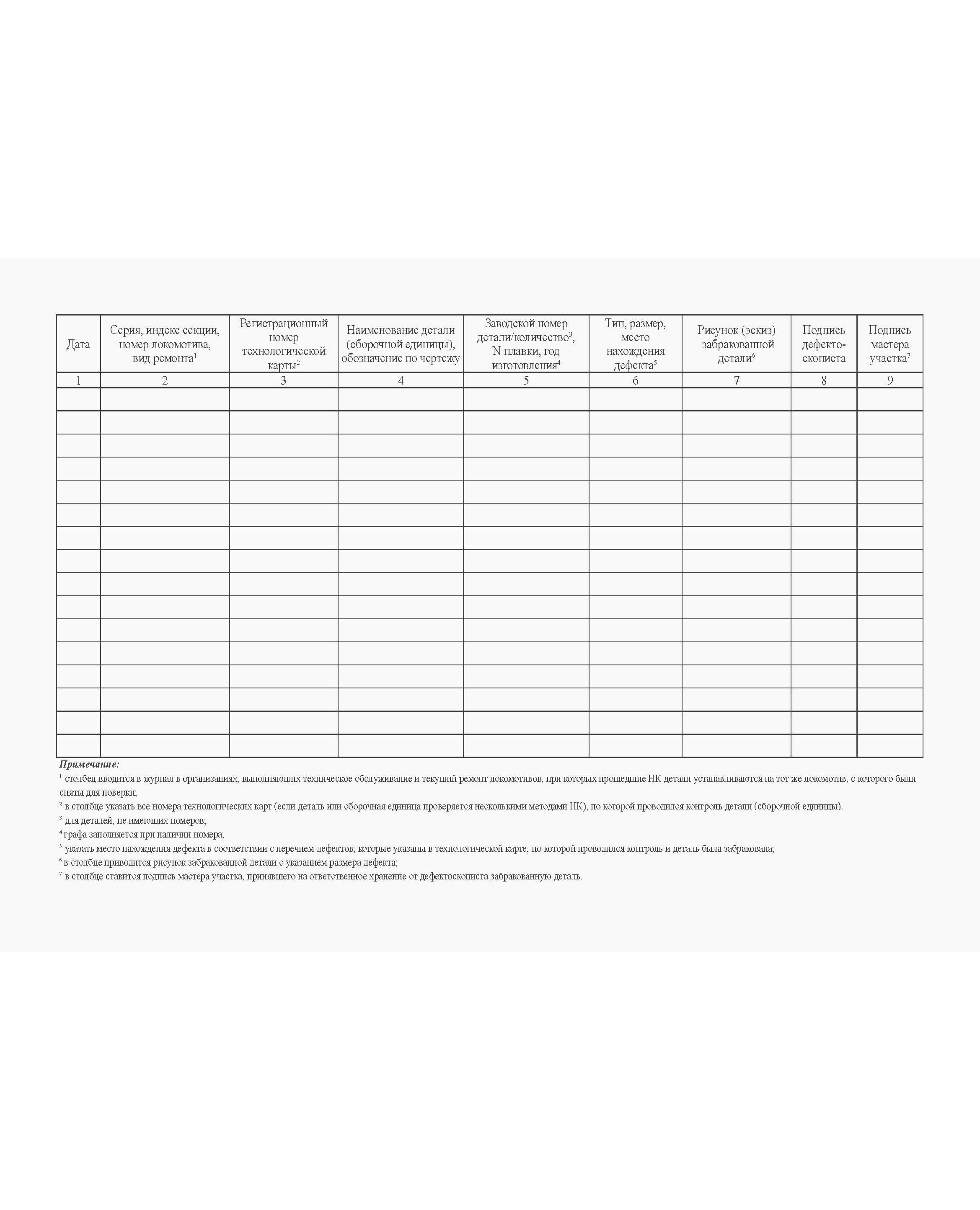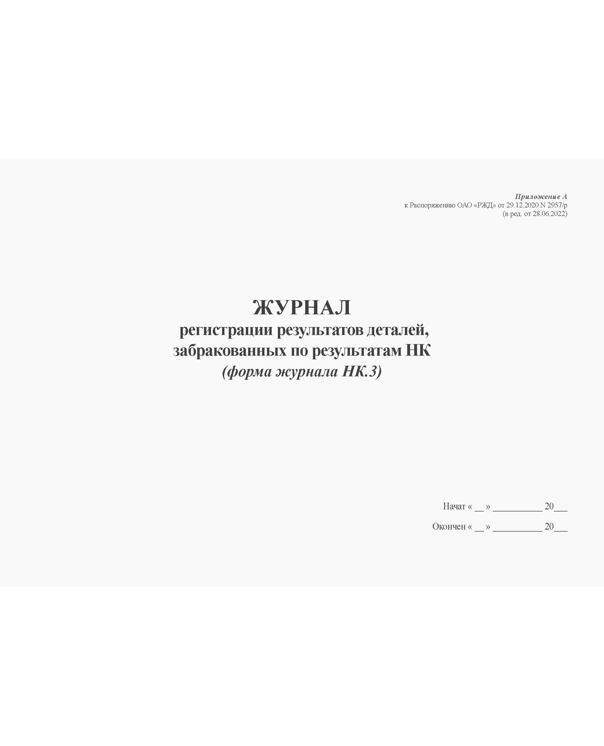 Журнал регистрации результатов НК деталей, забракованных по результатам НК (форма журнала НК.3)). Приложение А к Распоряжению ОАО "РЖД" от 29.12.2020 N 2957/р (в ред. от 28.06.2022) (альбомный, прошитый, 100 страниц)