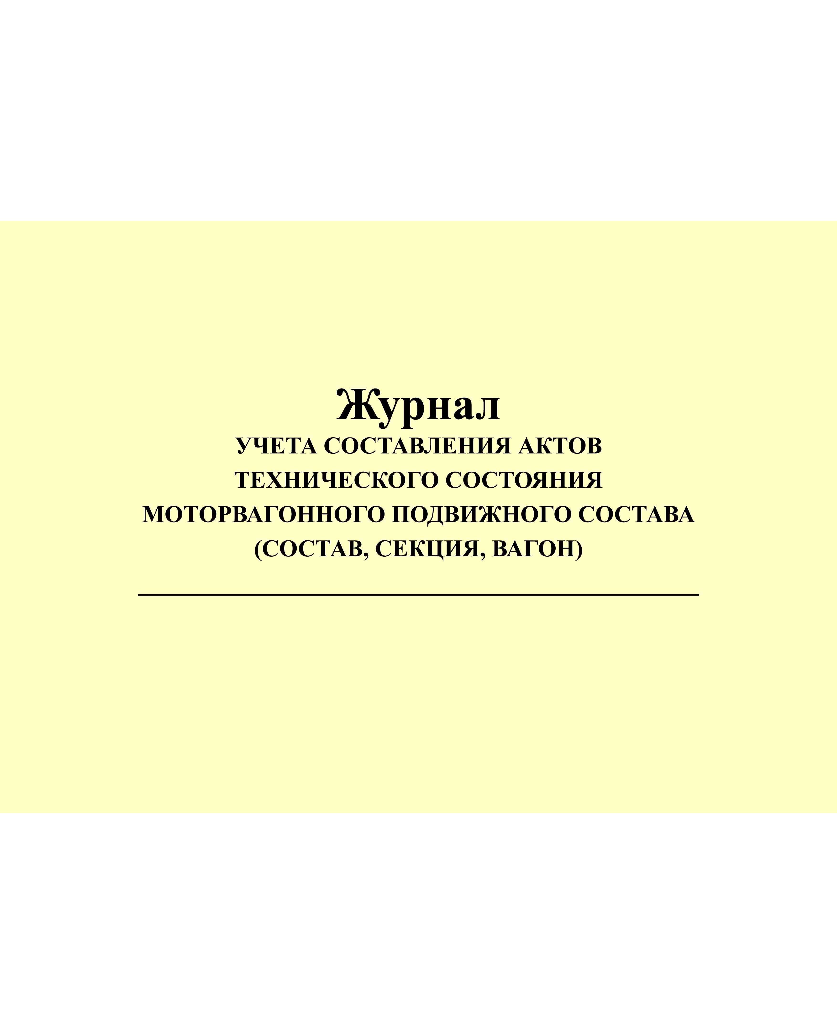 Журнал учета составления актов технического состояния. Приложение № 6 к Положению о допуске моторвагонного железнодорожного подвижного состава и локомотивных бригад перевозчиков на железнодорожные пути общего пользования инфраструктуры ОАО "РЖД" в пригородном сообщении, утв. Распоряжением ОАО "РЖД" от 12.08.2016 № 1655р (прошитый, 100 страниц)