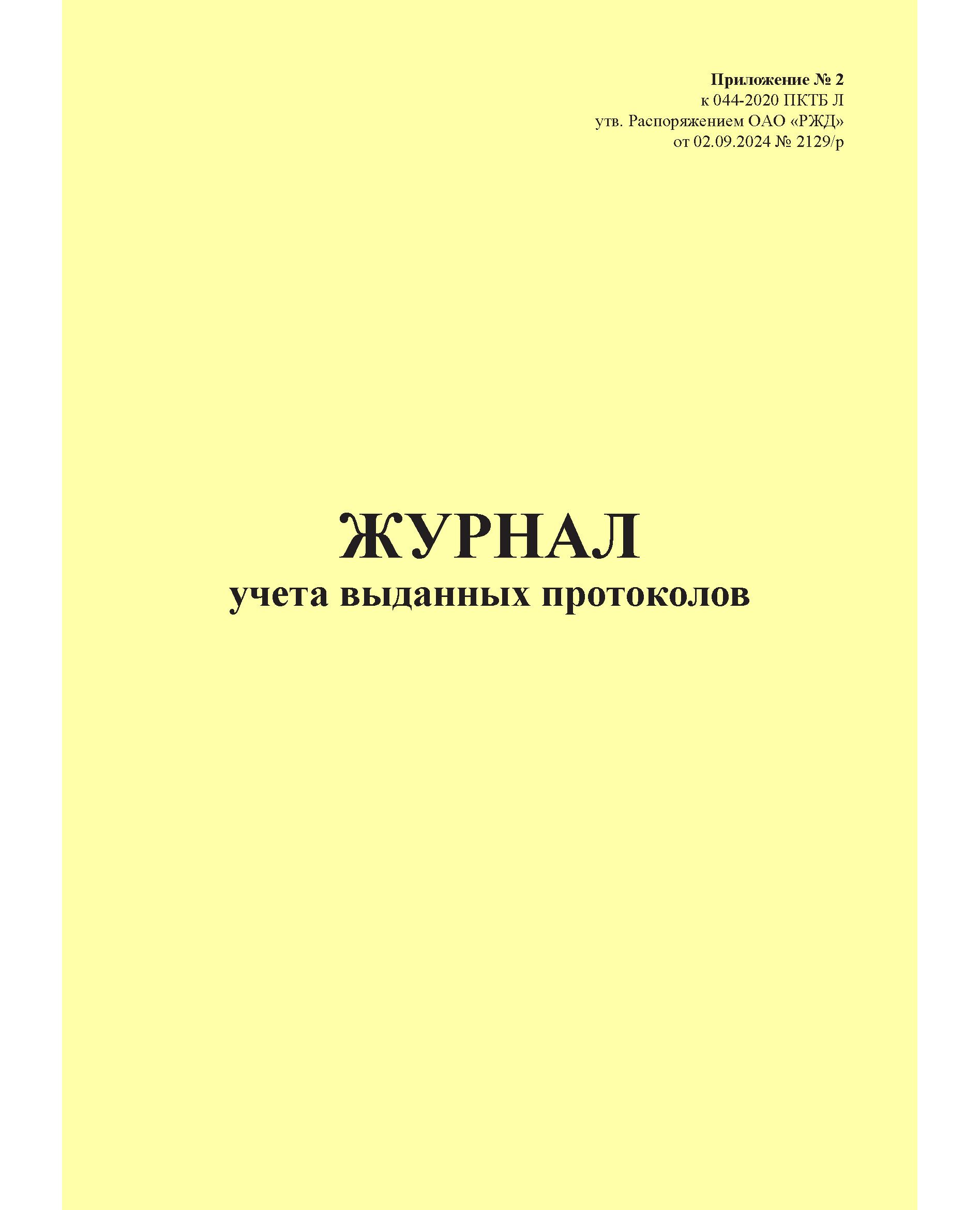Журнал учета выданных протоколов. Приложение № 2 к 076-2024 ПКТБ Л (прошитый, 100 страниц)
