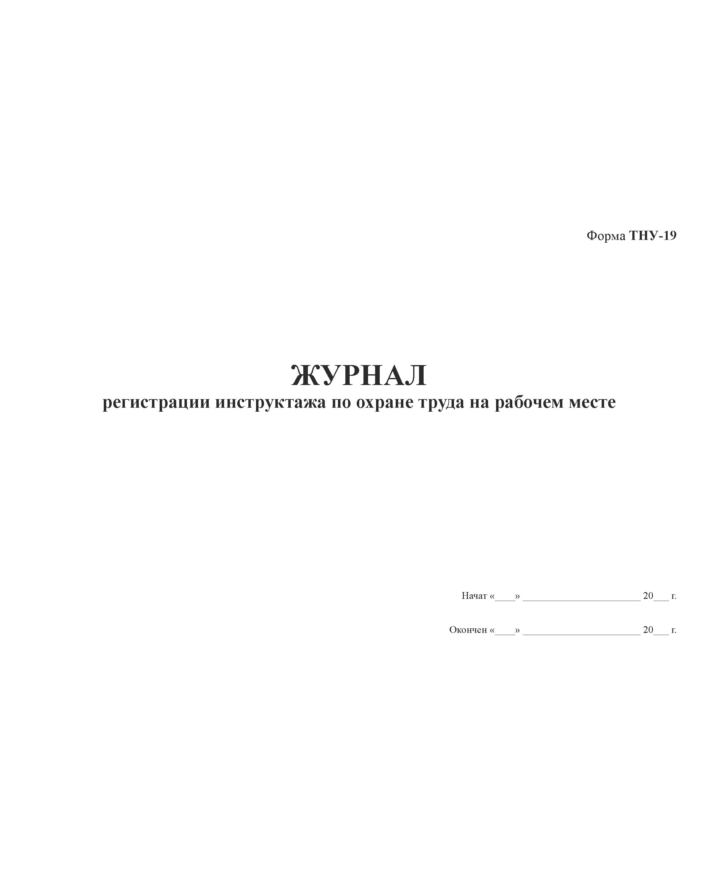 Форма ТНУ-19. Журнал регистрации инструктажа по охране труда на рабочем месте (прошитая, 100 страниц)