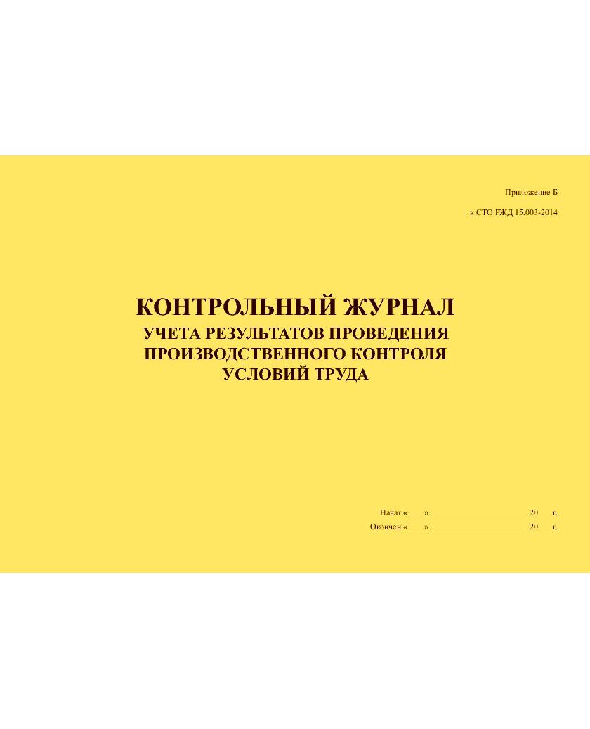 Контрольный журнал учета результатов проведения производственного контроля условий труда. Приложение Б к СТО РЖД 15.003-2014 (прошитый, 100 страниц)