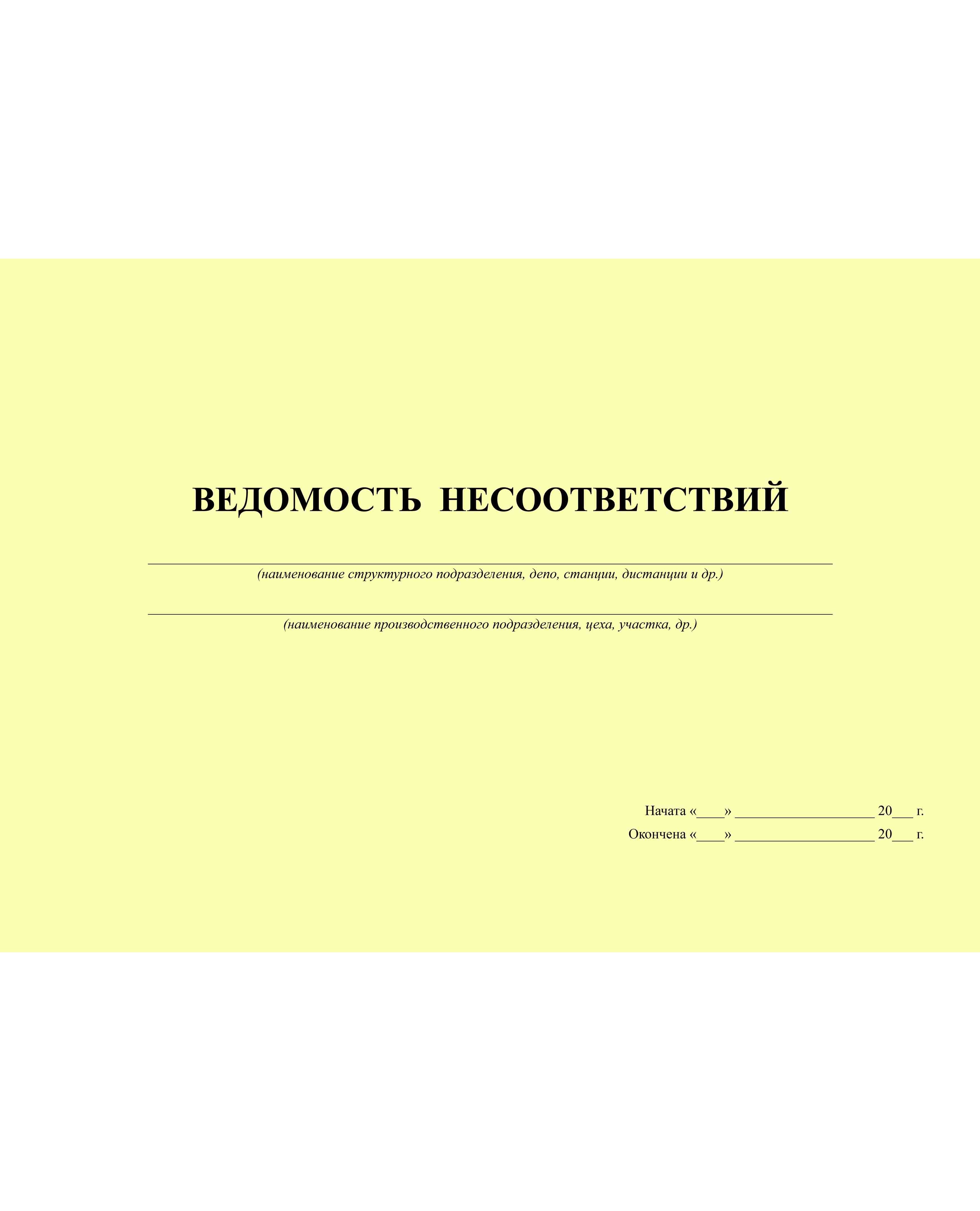 Ведомость несоответствий (Приложение А к СТО РЖД 15.014-2016). (прошитый, 100 страниц)