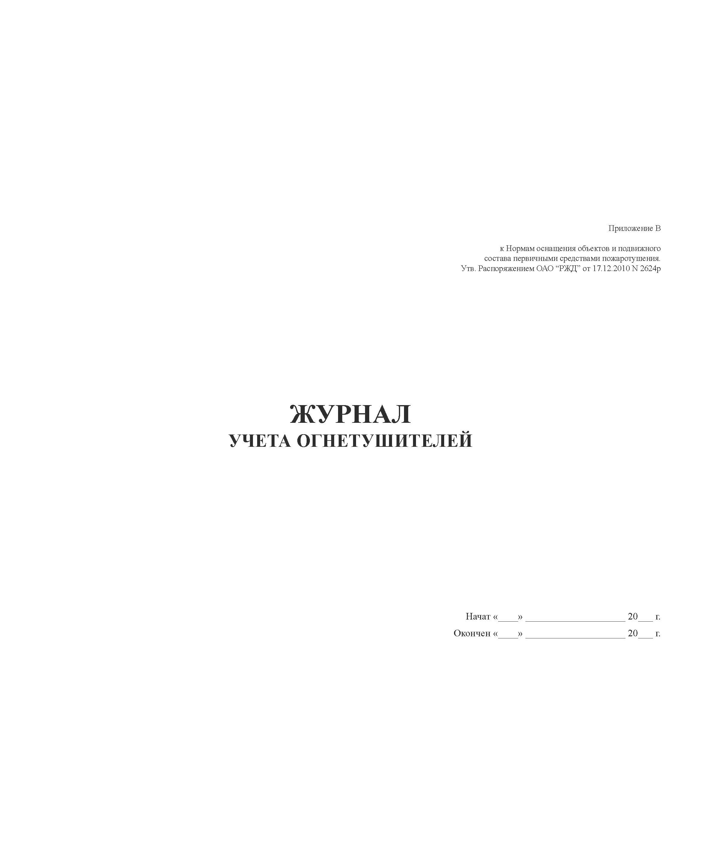 Журнал учета огнетушителей. Приложение 4 к Нормам оснащения подвижного состава железнодорожного транспорта в международном пассажирском сообщении между государствами - участниками СНГ, Латвийской Республикой, Литовской Республикой, Эстонской Республикой первичными средствами пожаротушения. (прошитый, 100 страниц)