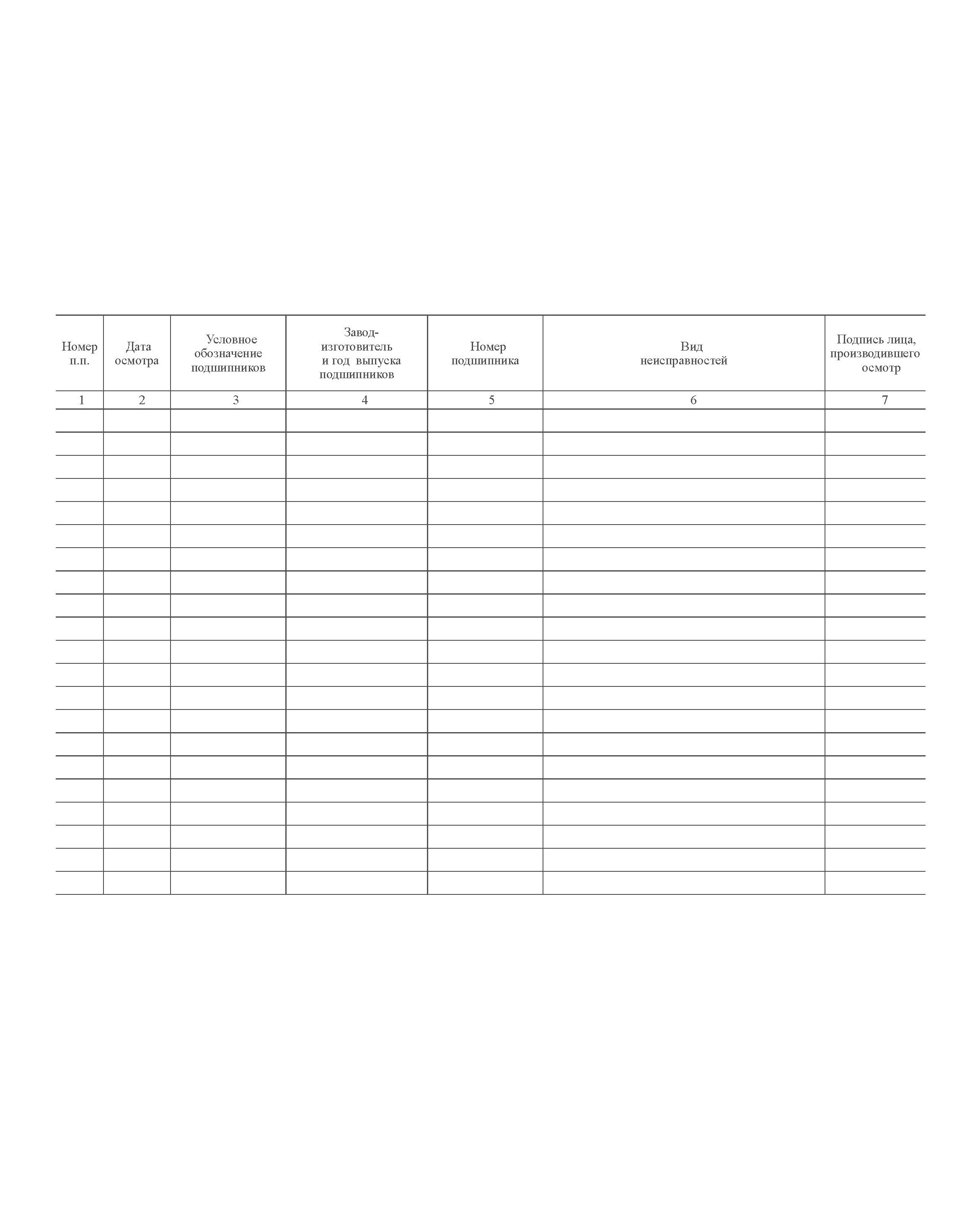 Форма ВУ-91. Журнал осмотра подшипников (Приложение Д к ПКТБ ЦВ-104.759-2008РК) (прошитый, 100 страниц)